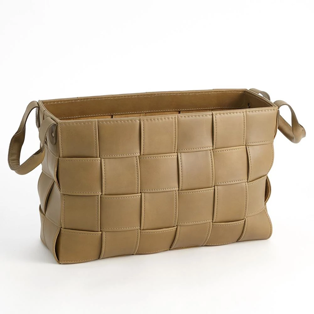 Glover Rustic Lodge Brown Soft Woven Leather Floor Basket - Small