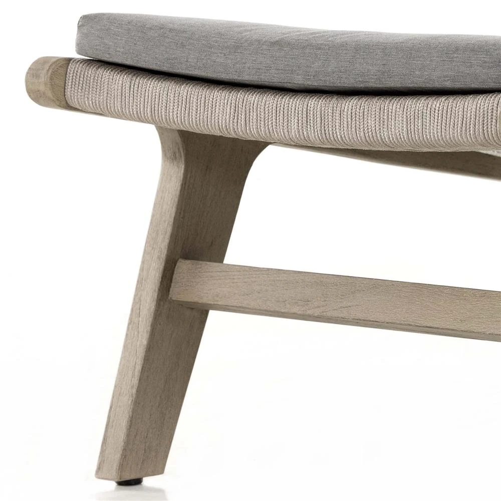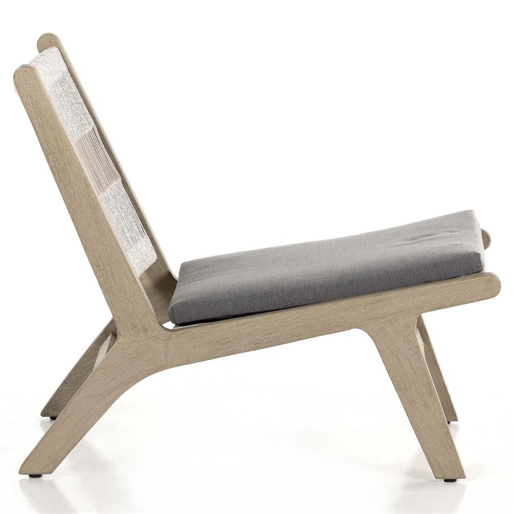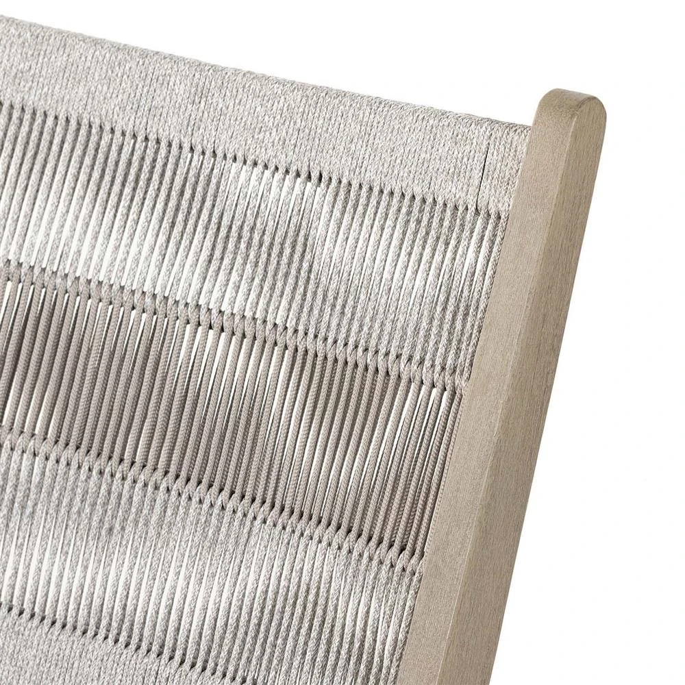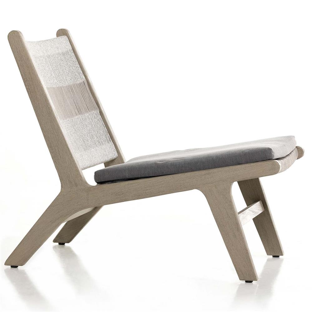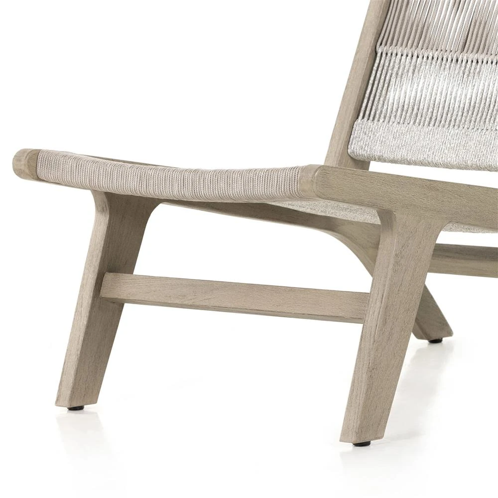 Liana Coastal Beach Grey Teak Wood Woven Rope Cushion Outdoor Lounge Chair