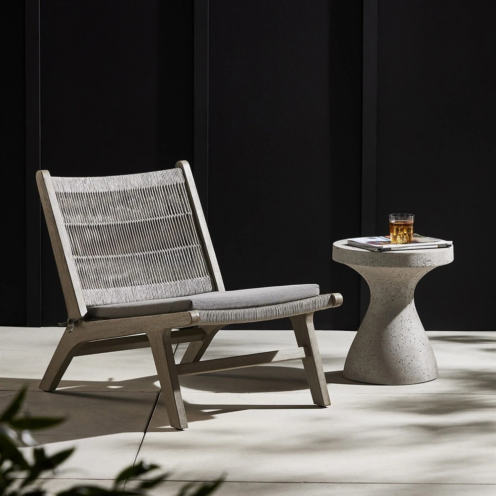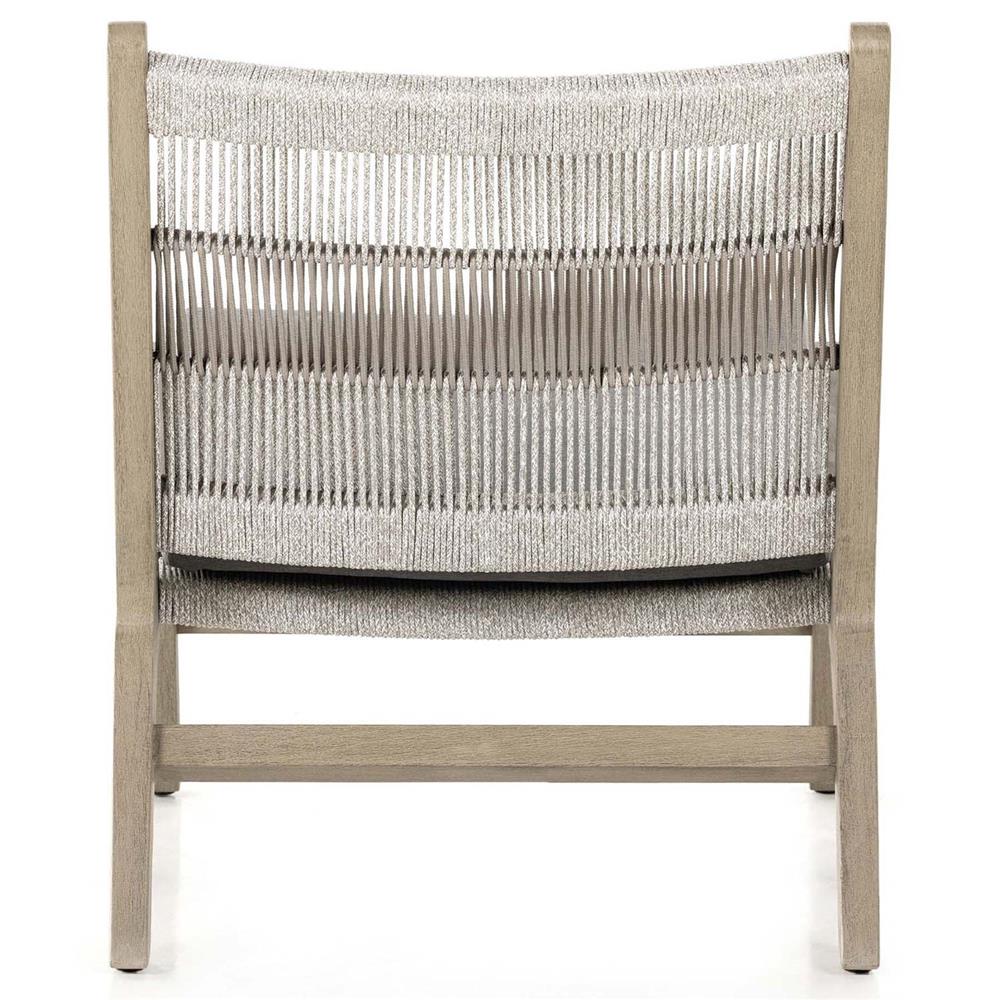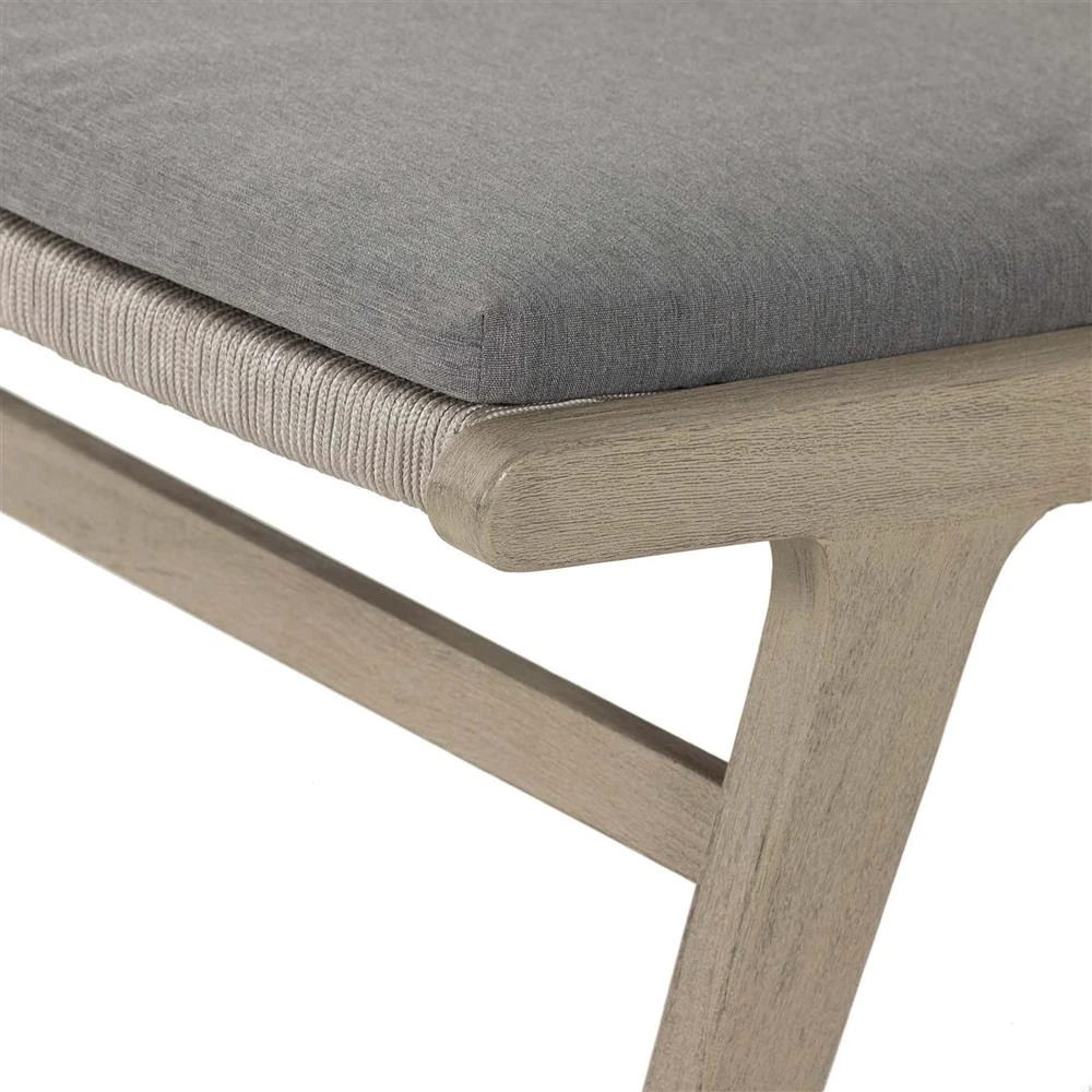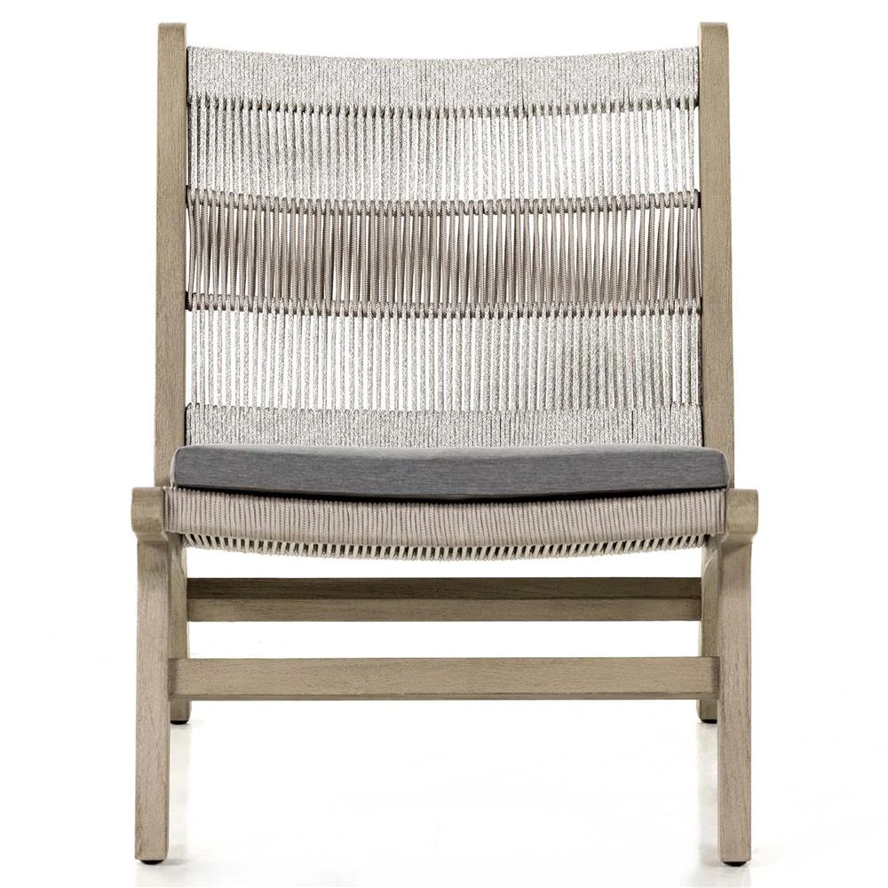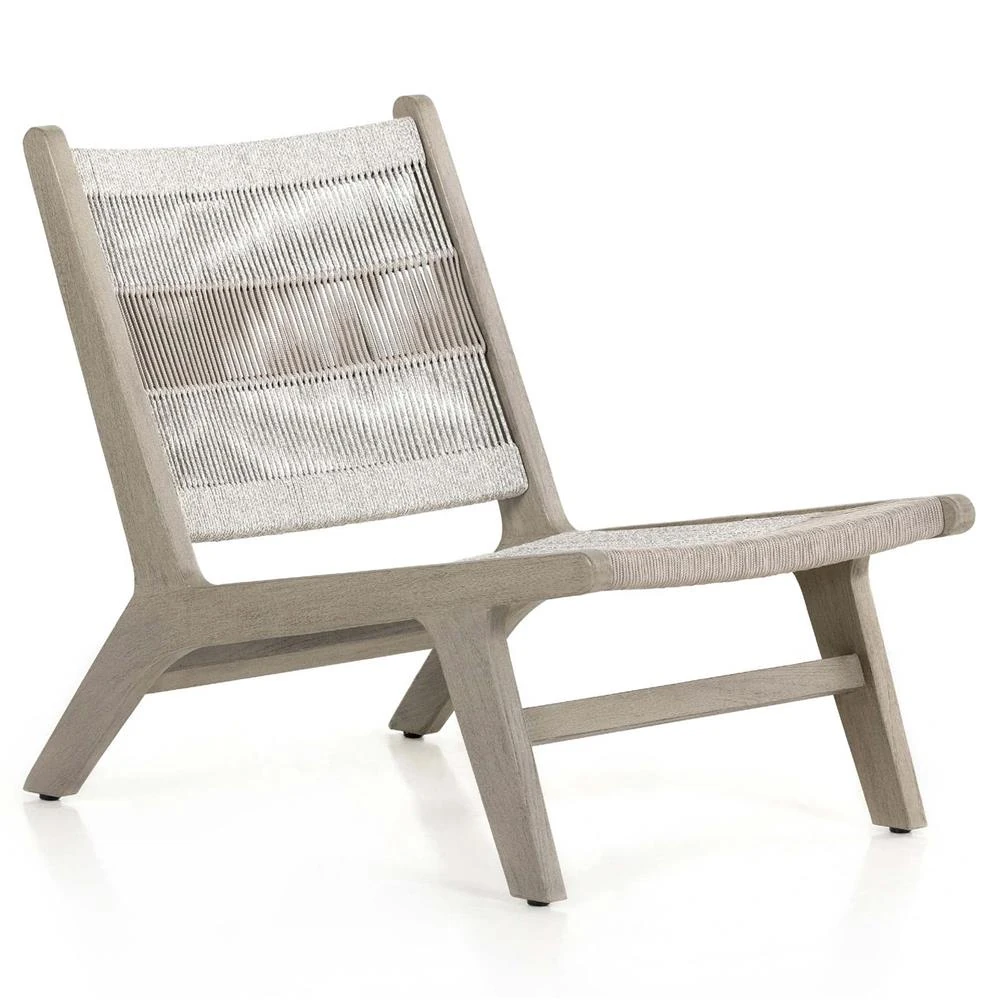 Liana Coastal Beach Grey Teak Wood Woven Rope Cushion Outdoor Lounge Chair