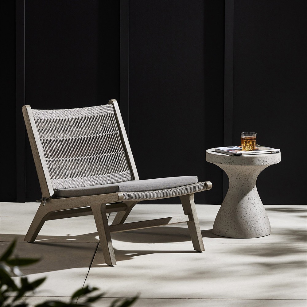 • Liana Coastal Beach Teak Wood Dark Grey Woven Rope Cushion Outdoor Lounge Chair|Kathy Kuo Home