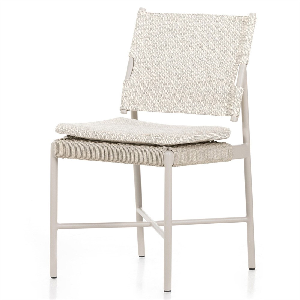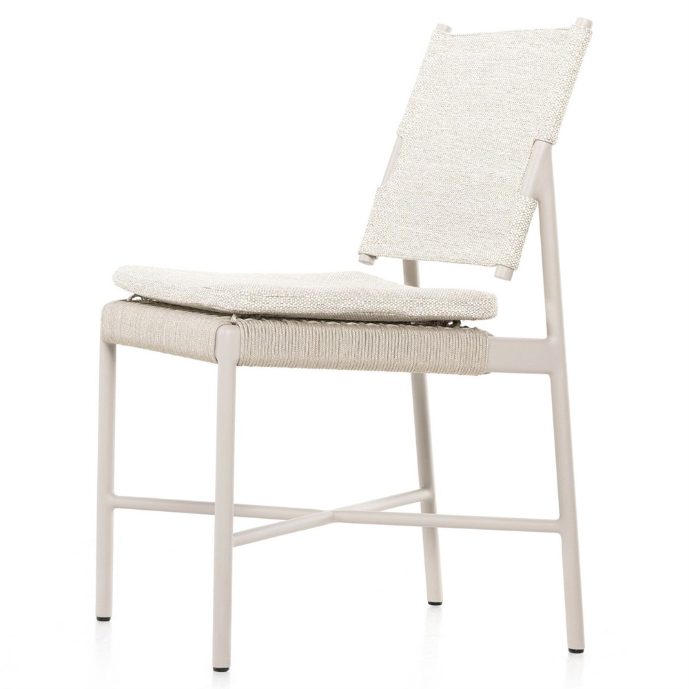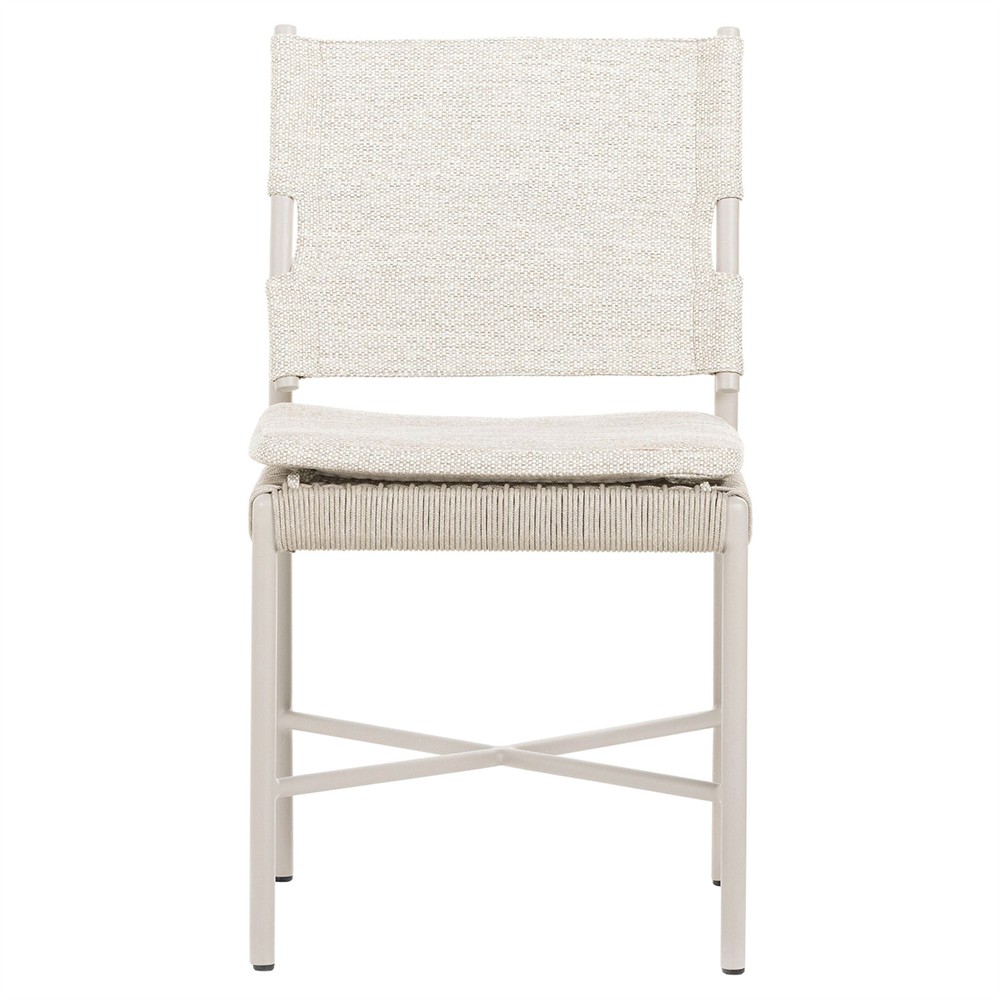 • Rose Coastal Off White Upholstered Woven Rope Wood Outdoor Dining Side Chair|Kathy Kuo Home