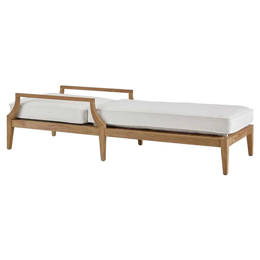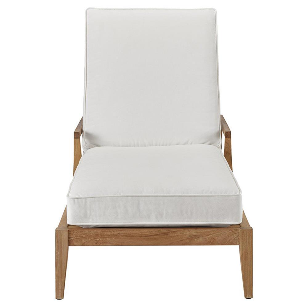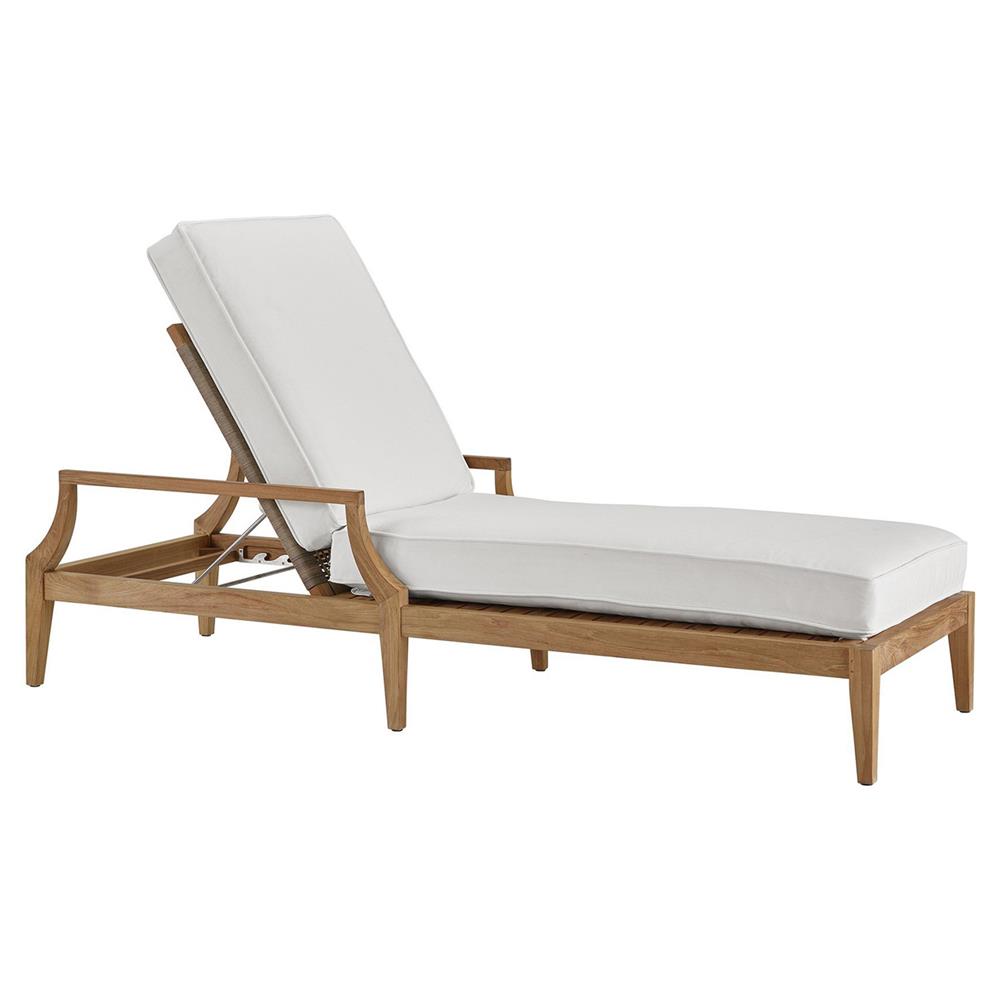 Dahliah Coastal White Cushion Beige Wicker Natural Teak Outdoor Chaise Lounge