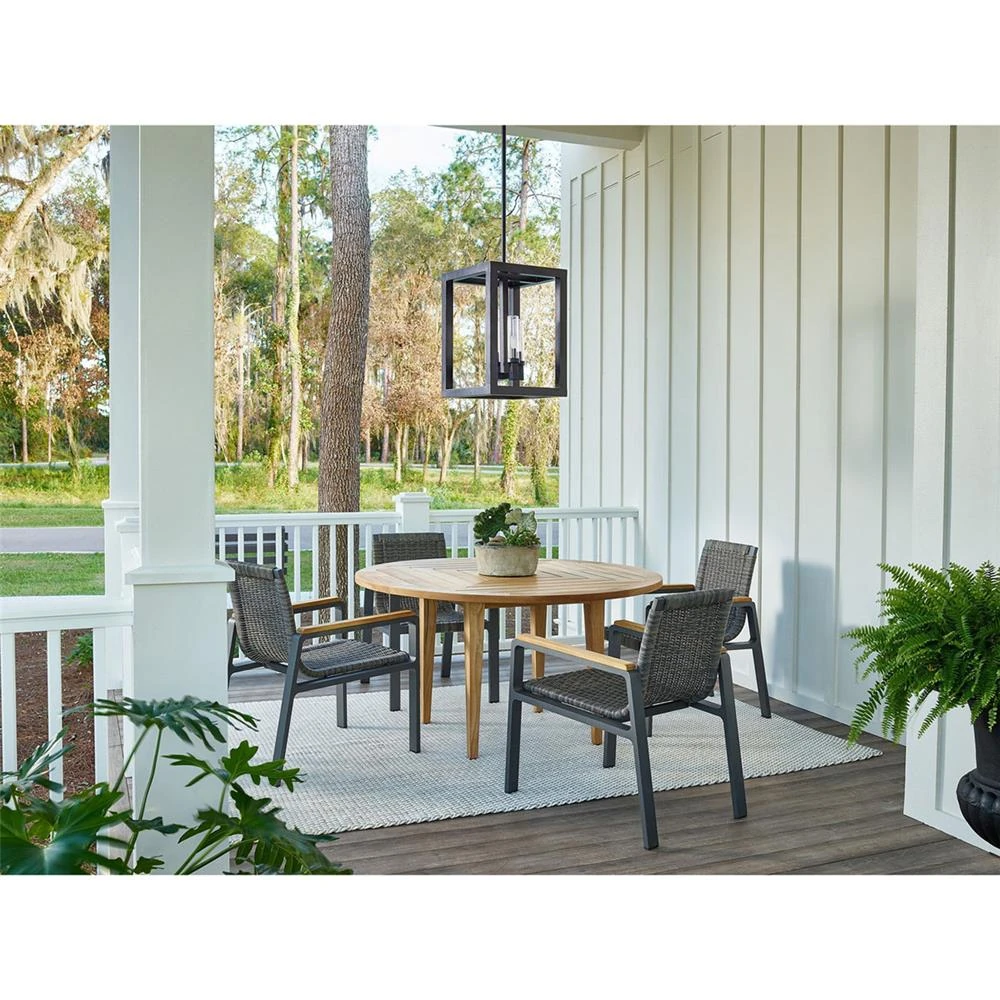 Joel Coastal Beach Stained Brown Teak Woven Round Outdoor Dining Table - 60"