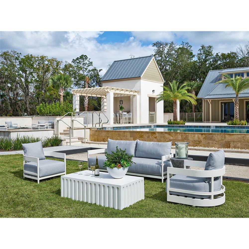 • Lindale French Country Grey Aluminum White Cushion Back Outdoor Sofa - 74"W|Kathy Kuo Home