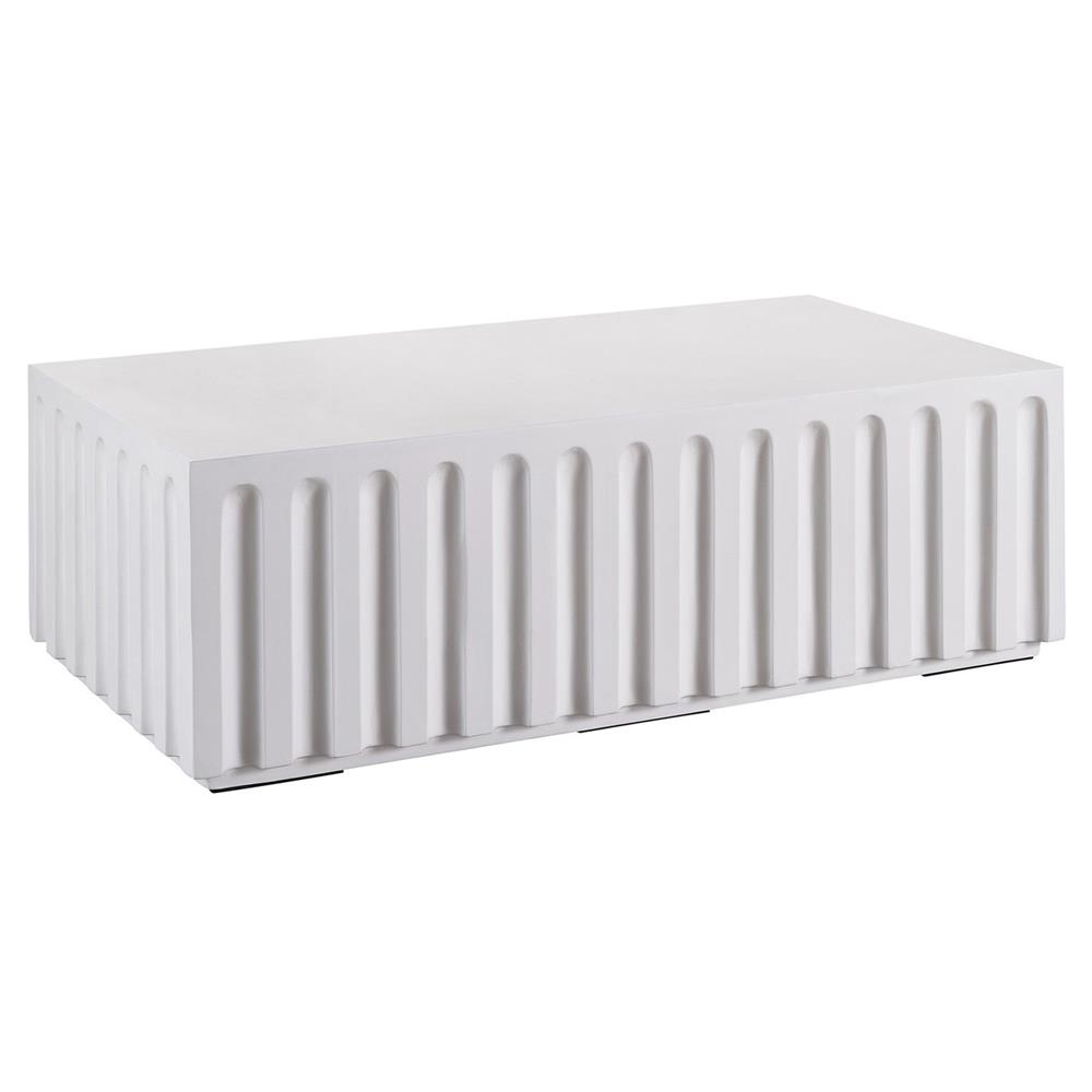 Jenieva French Country White Concrete Rectangular Block Outdoor Coffee Table