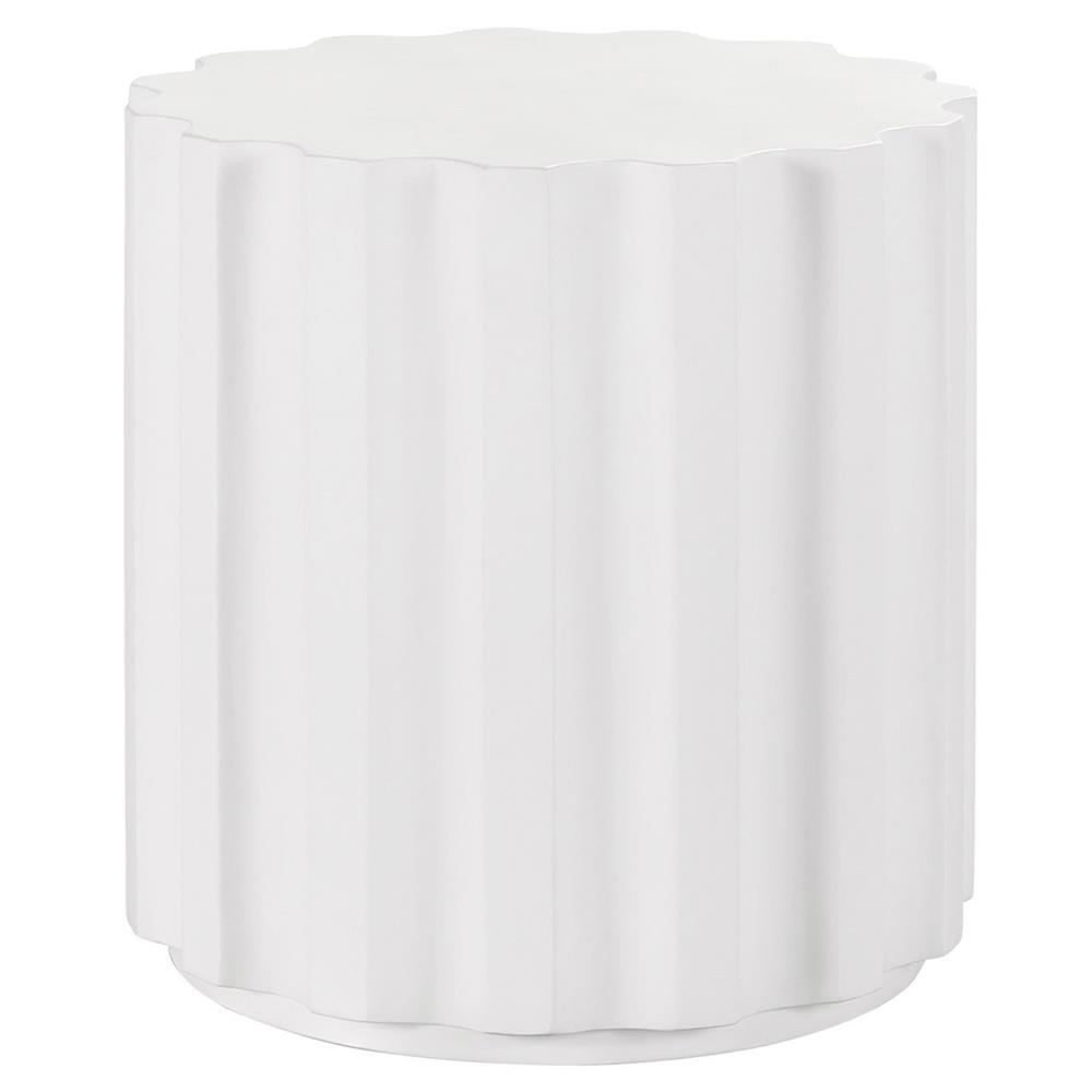 Jenieva French Country White Cast Concrete Round Drum Outdoor Side Table