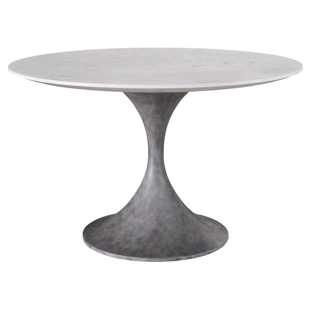 Jesiel French White Faux Marble Grey Concrete Round Outdoor Dining Table - 48"W
