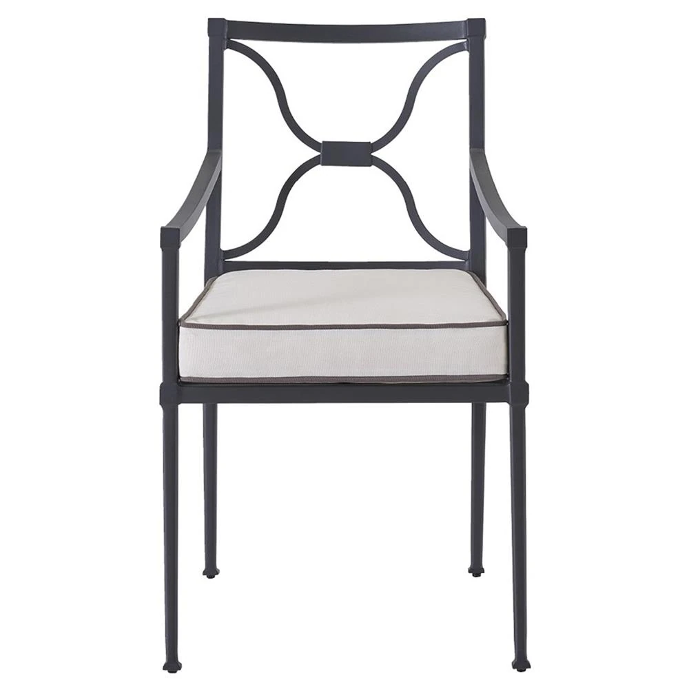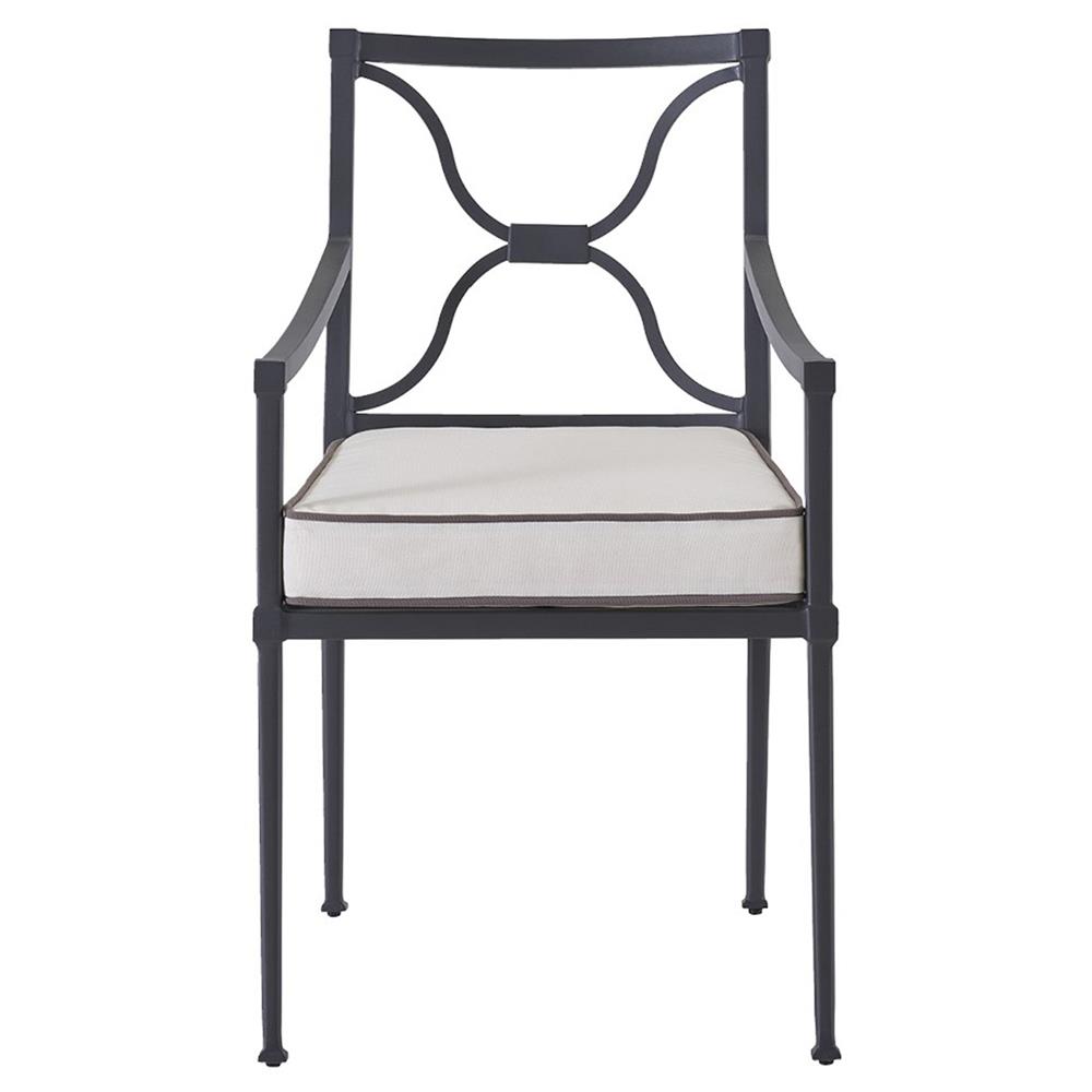 • Aurore French Beige Cushion Metal Outdoor Dining Arm Chair|Kathy Kuo Home