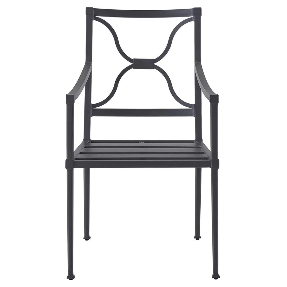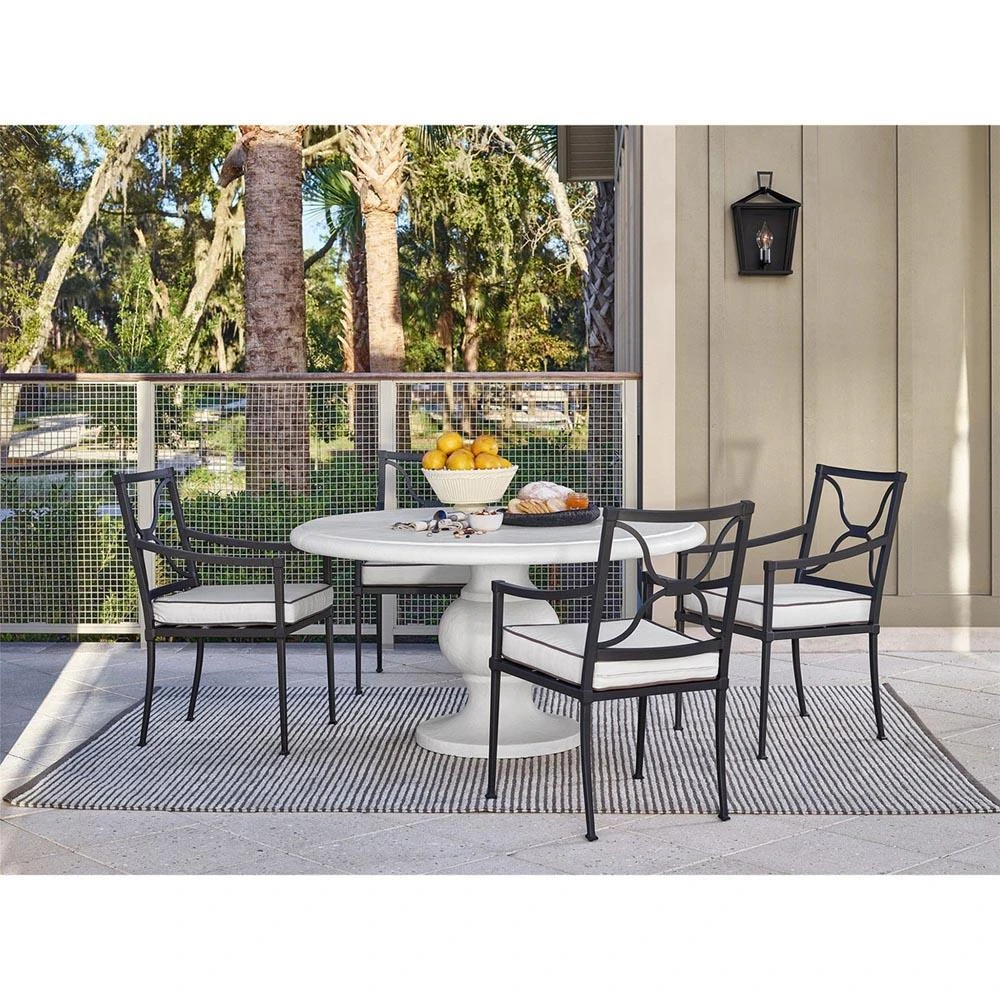 Lindale French Country White Cushion Grey Aluminum Outdoor Dining Arm Chair