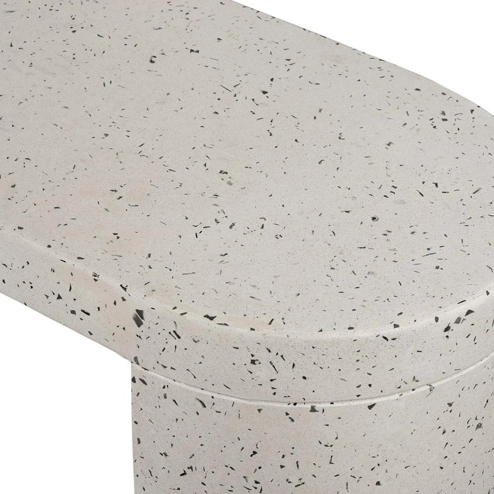 Lyone Industrial Loft White Cement Speckled Terrazzo Oval Outdoor Bench