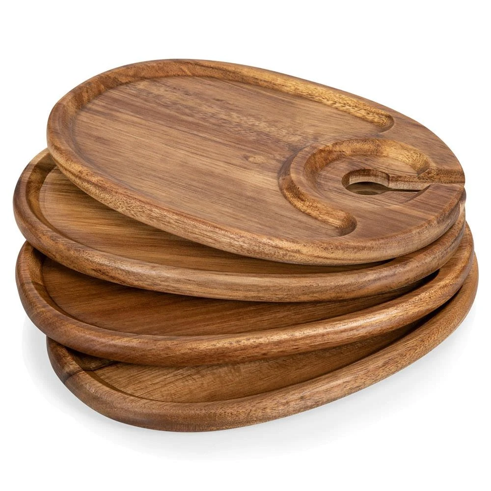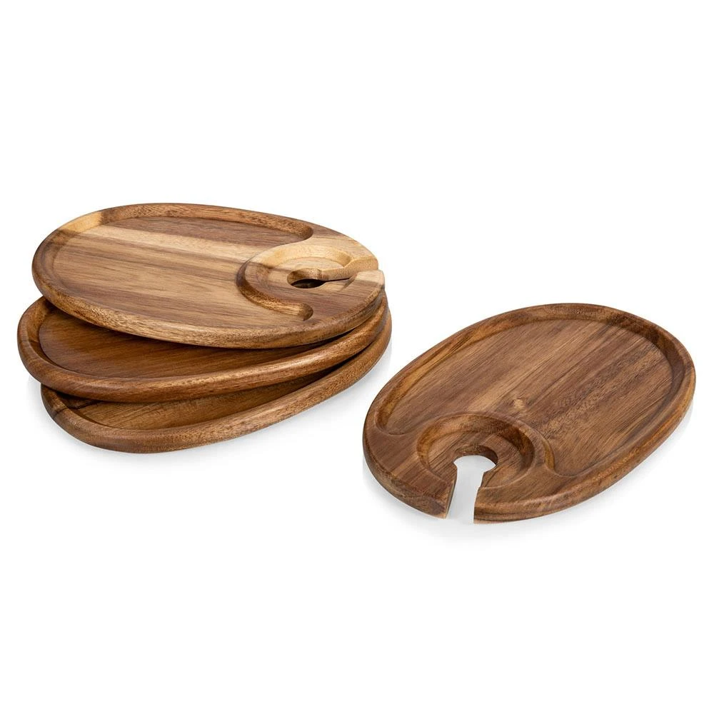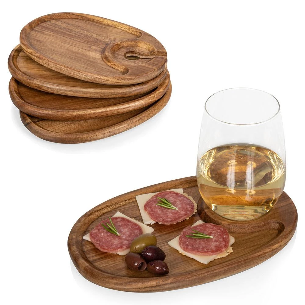 Collette French Country Brown Acacia Wood Wine Appetizer Tray - Set of 4
