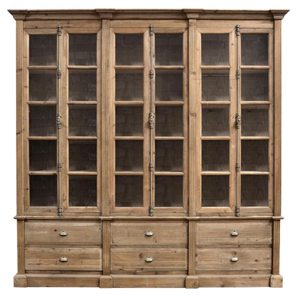 Dustin French Country Brown Pine Wood 6 Door Bookcase
