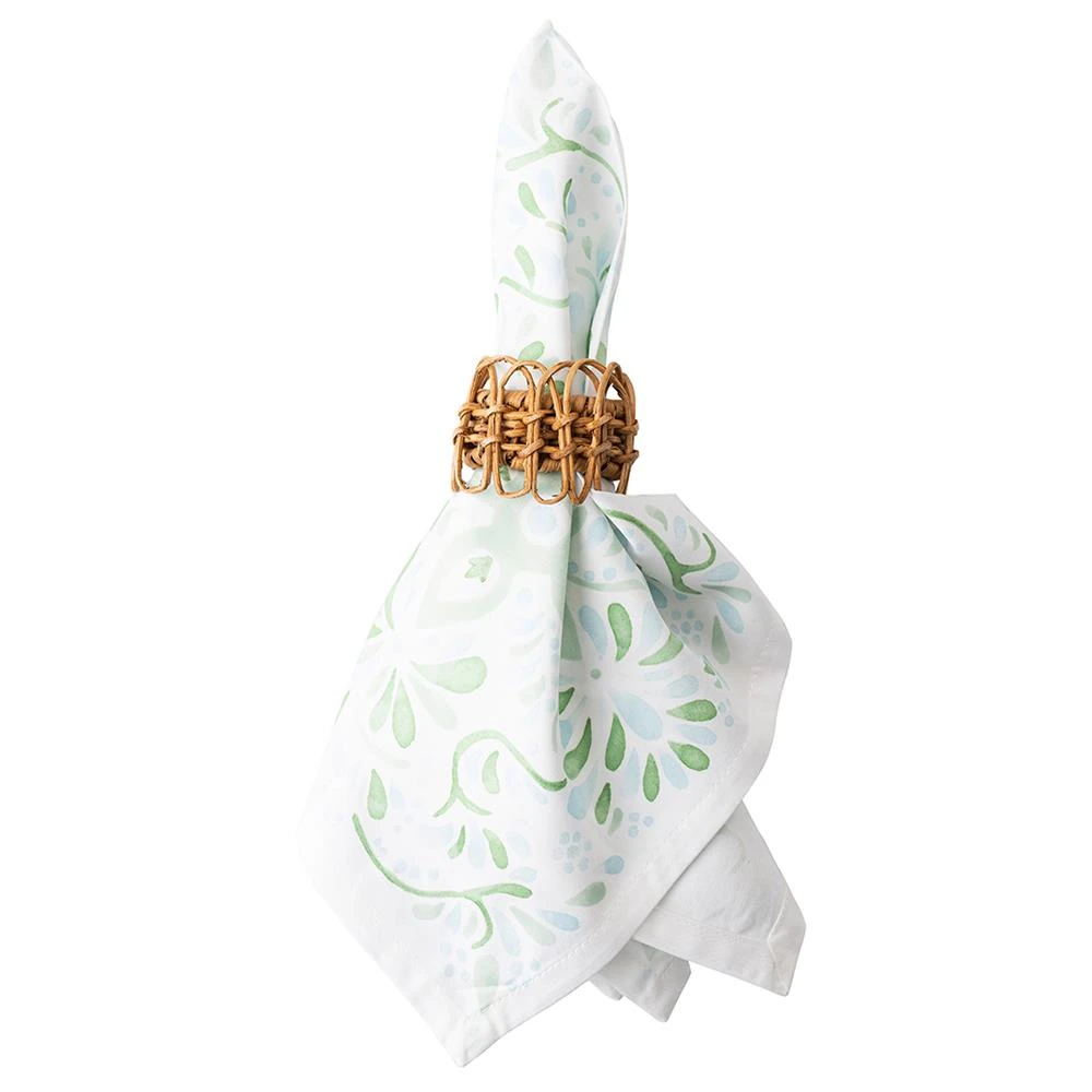 • Annmarie Coastal Beach Pine Green Woven Rattan Woven Napkin Ring - Set of 4|Kathy Kuo Home