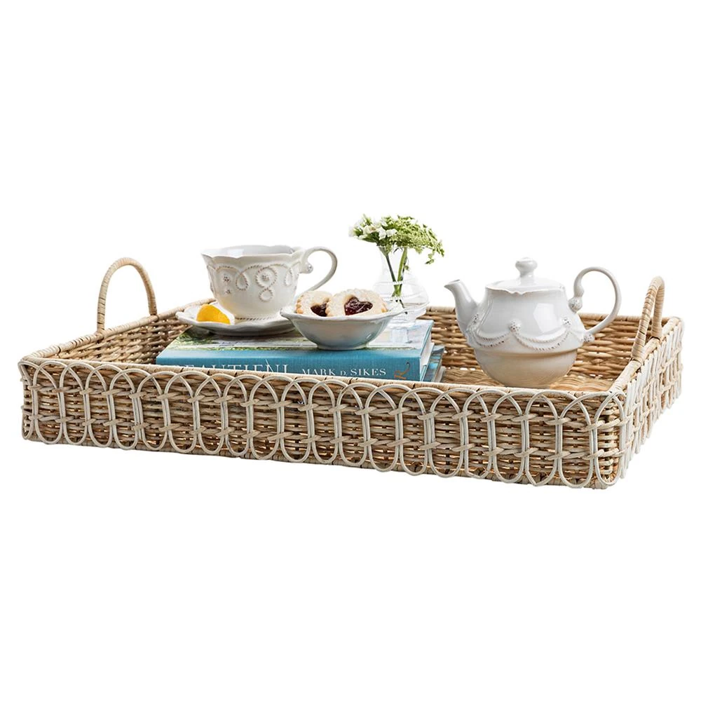Juliska Provence Coastal Beach Whitewash Rattan Rectangular Tray