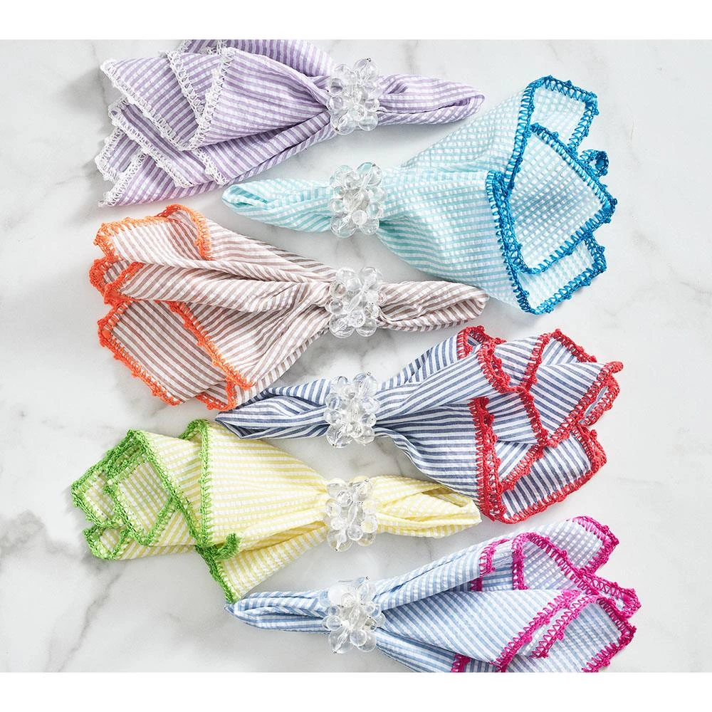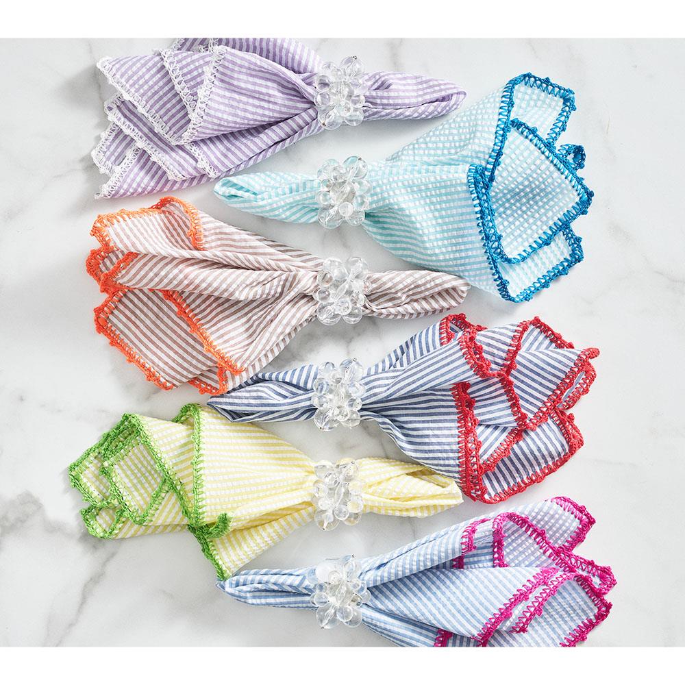 Hannah Seersucker Modern Navy Blue Striped Napkin - Set of 4
