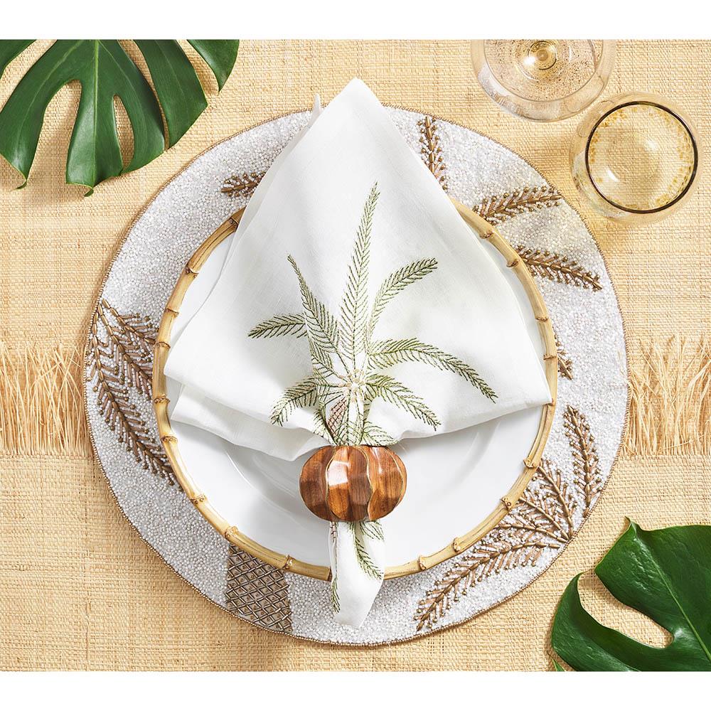 • Annmarie Coastal Beach Pine Green Woven Rattan Woven Napkin Ring - Set of 4|Kathy Kuo Home