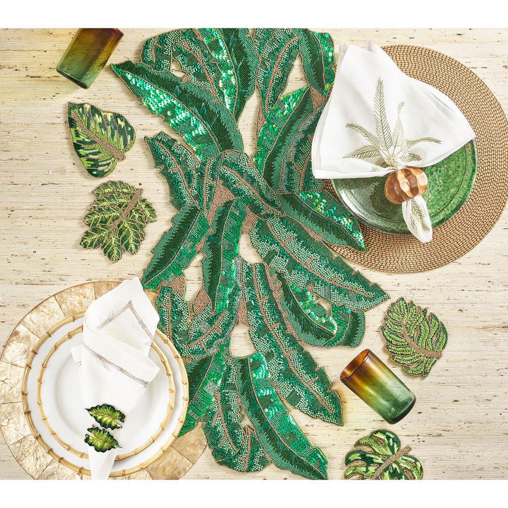 • Juliska Iberian Border Updated Traditional Evergreen Linen Napkin - Set of 4|Kathy Kuo Home