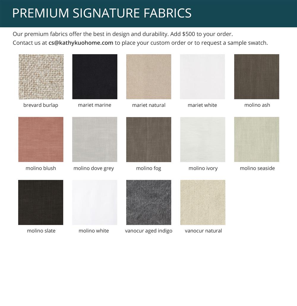 • Additional finish, fabric, COM and sample swatches options available on request