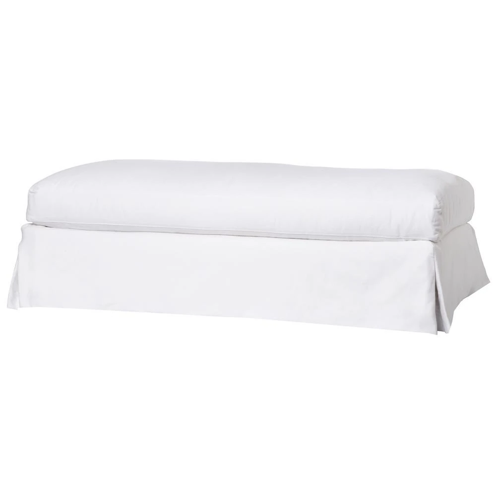 Cisco Home Seda Denim White Cotton Coastal Feather Down Slipcovered Ottoman Bench