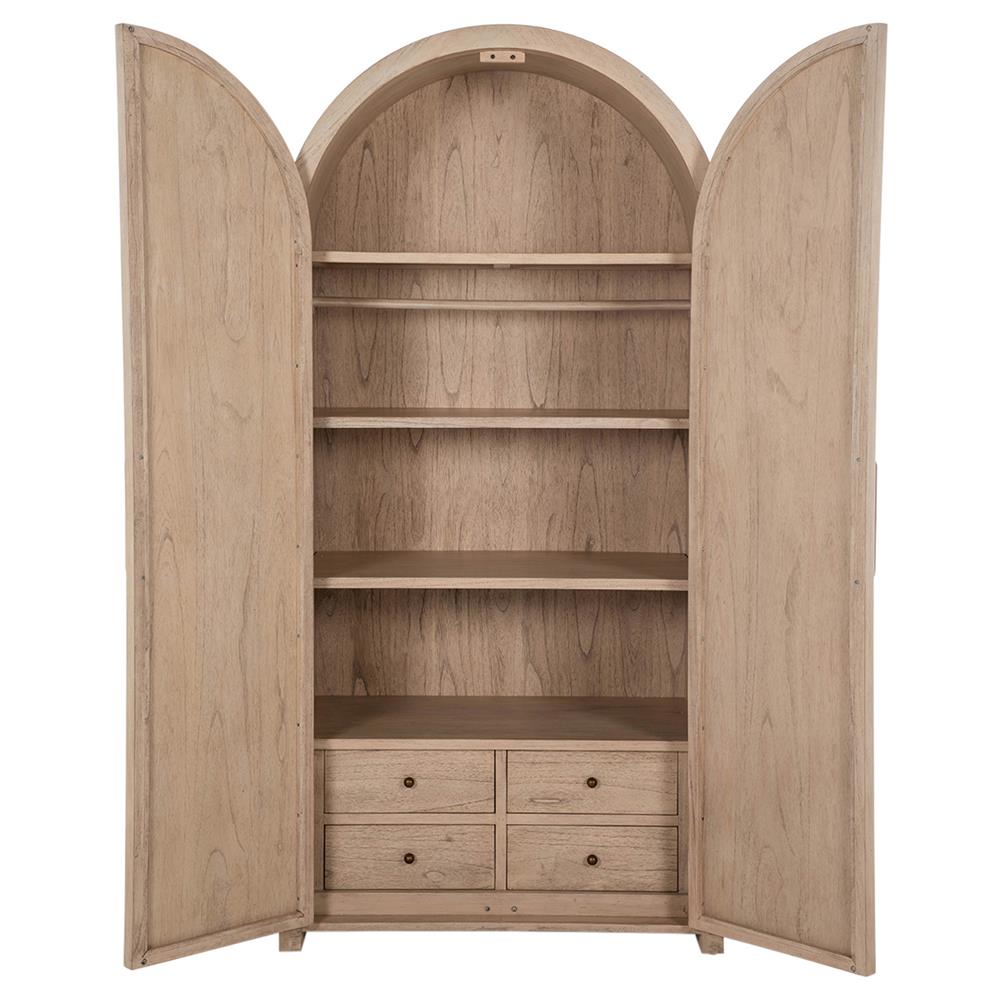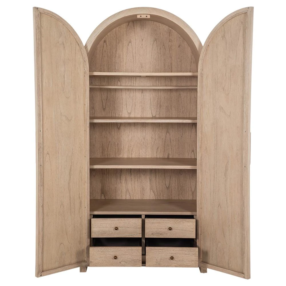 Elsa Natural Wood Glass Door Woven Rattan Drawer Arched China Cabinet