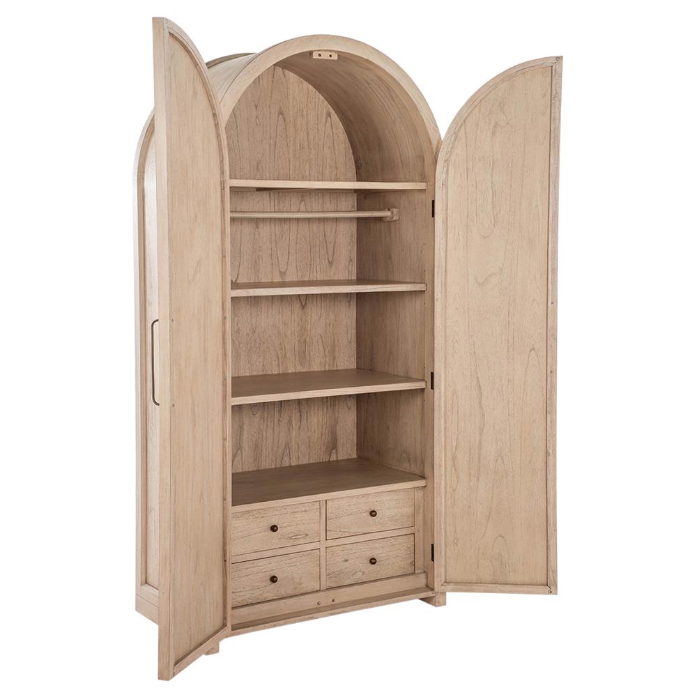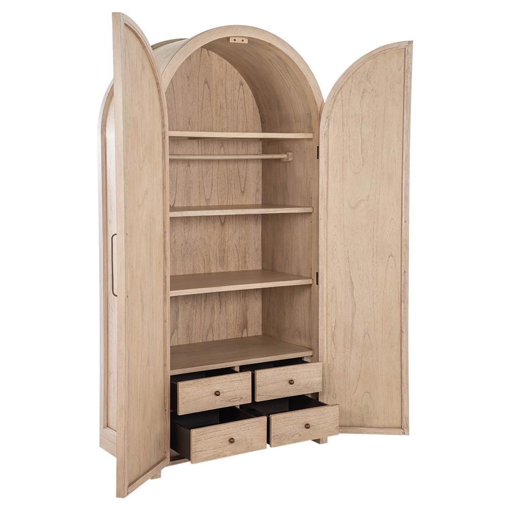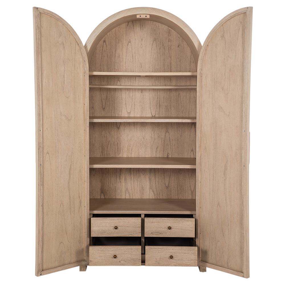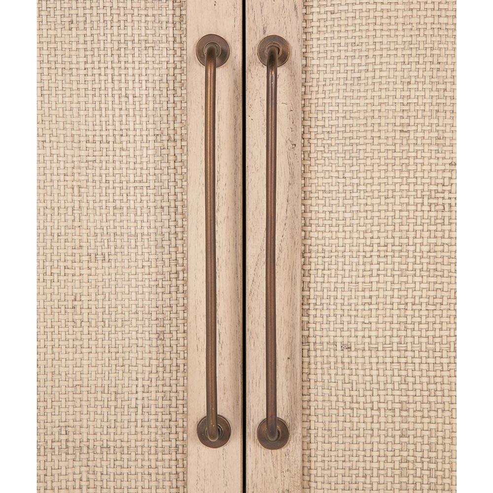 • Features 4 shelves and 4 drawers behind full-height arching rattan doors
