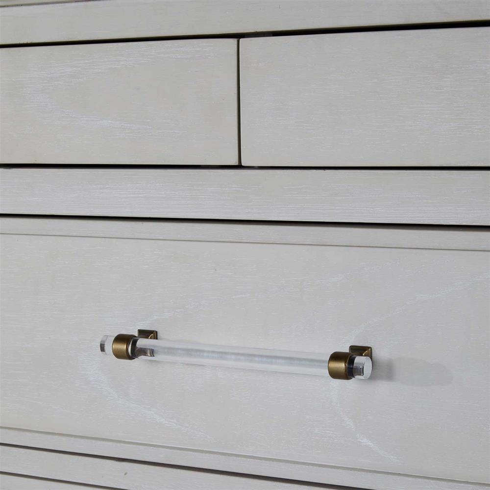 • Alexander French White Wood Acrylic Handle 3 Drawer Bachelor Chest Dresser|Kathy Kuo Home