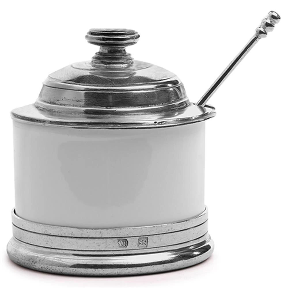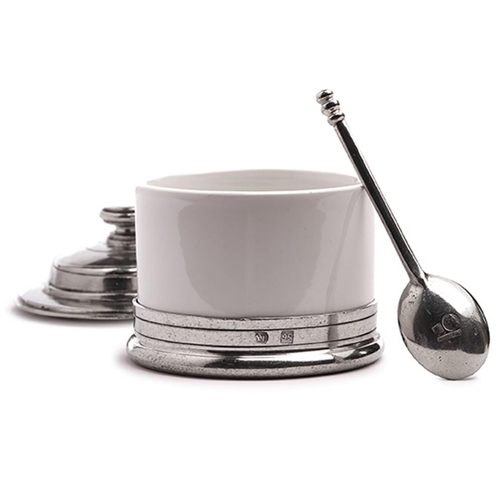 MATCH Modern Pewter Lid Clear Glass Condiment Bowl and Spoon
