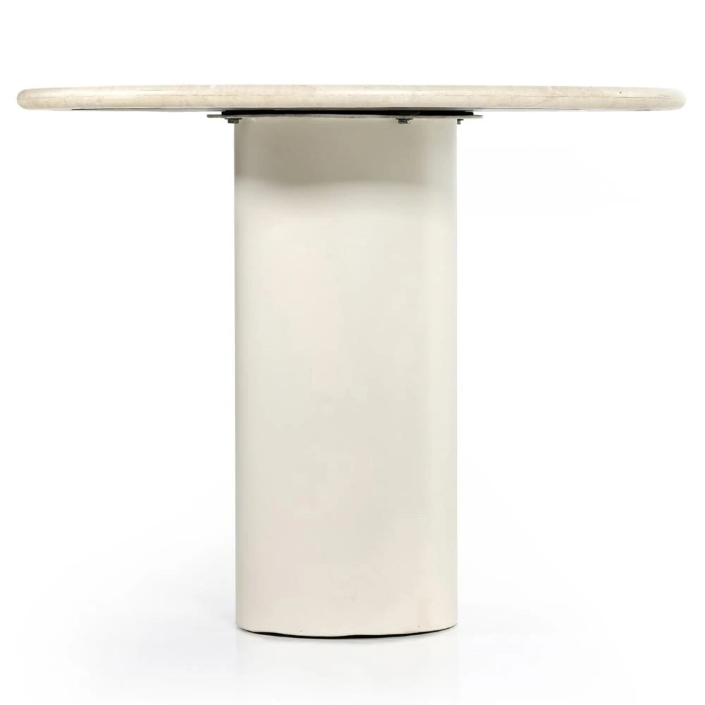 Florentine French Country Cream Marble Grey Wood Pedestal Dining Table - 44"