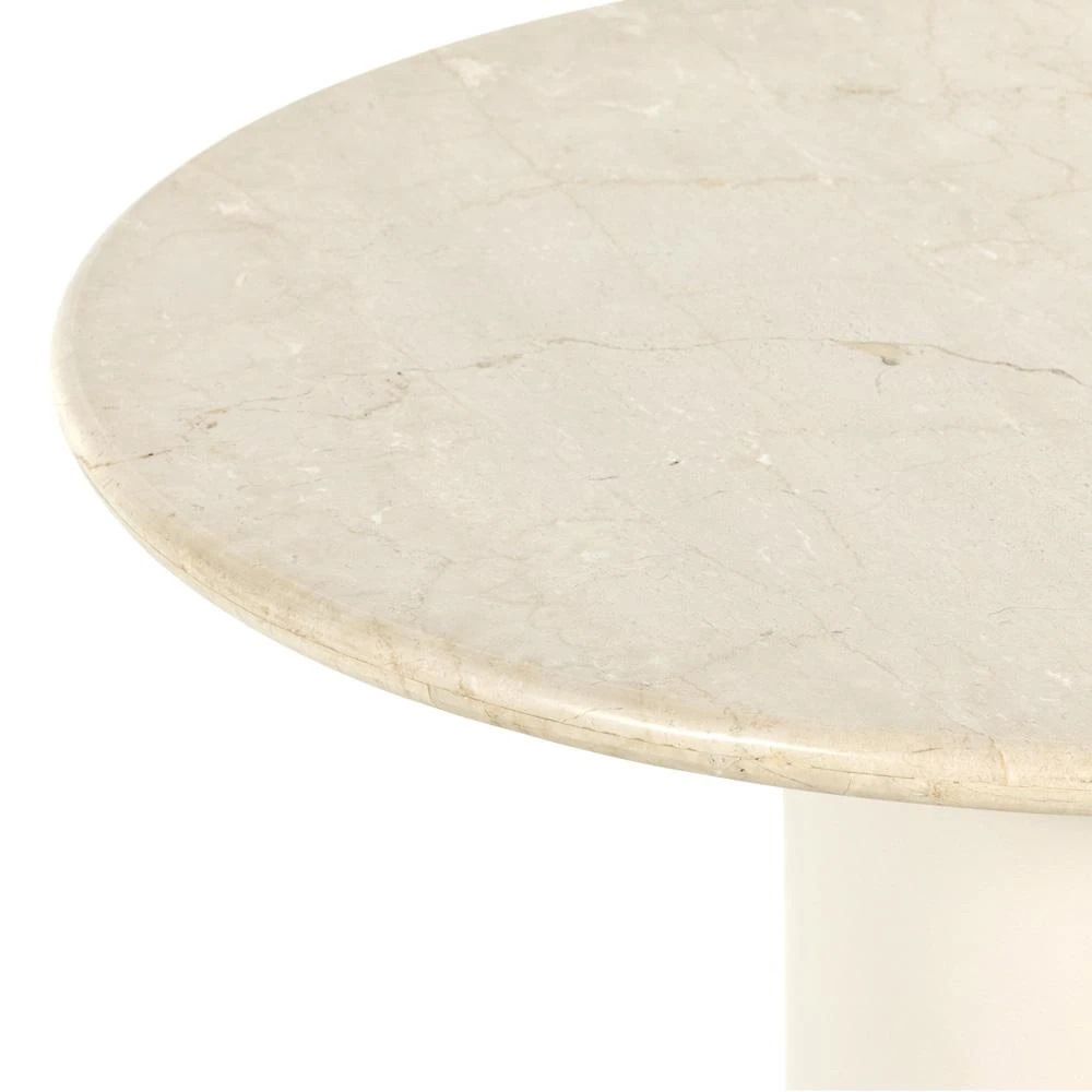 Gary French Country Cream Marble Top Iron Base Round Dining Table - Small - 38"W