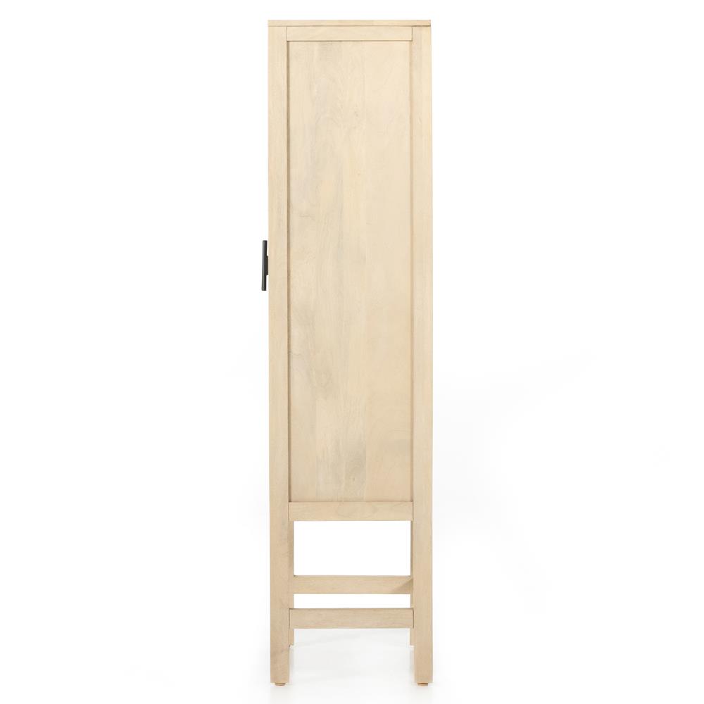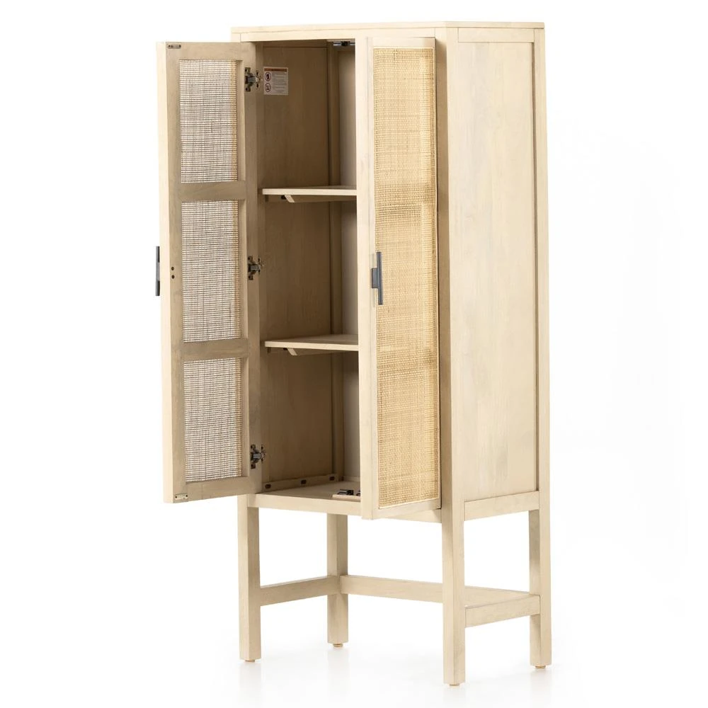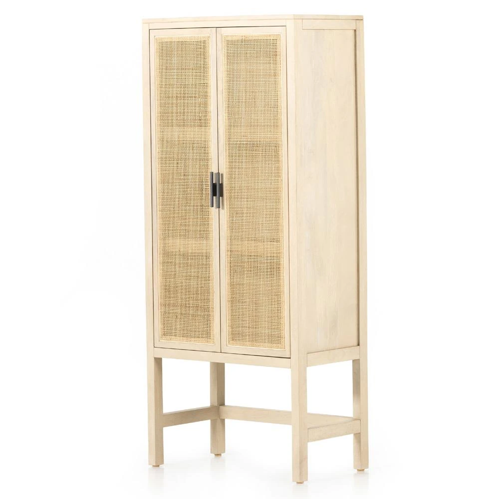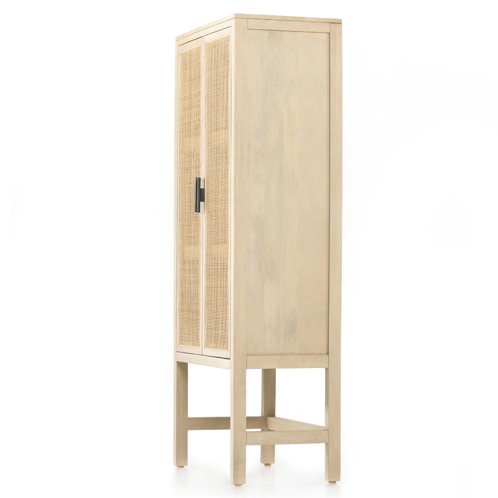Corazon Coastal Beach Beige Mango Wood Natural Cane Door Armoire Cabinet