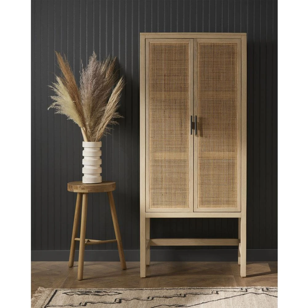 Noelle Modern Classic Brown Woven Cane White Wood 2 Door Armoire
