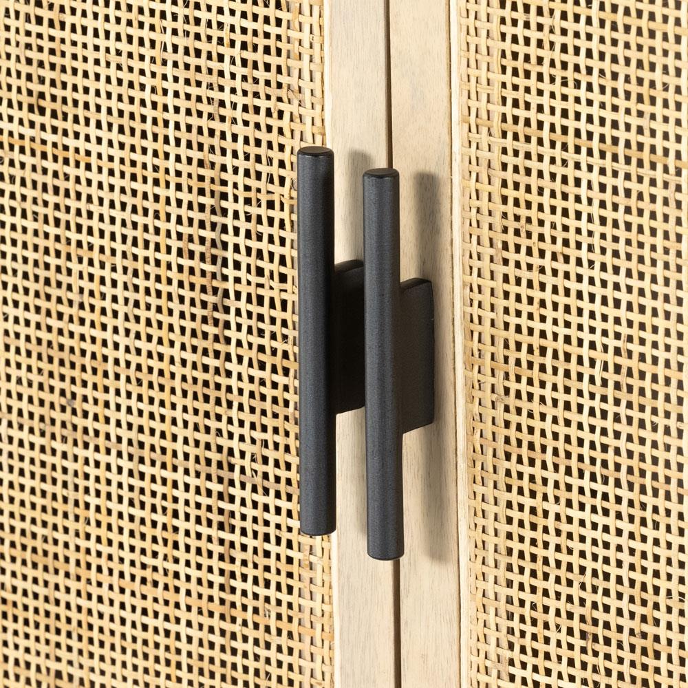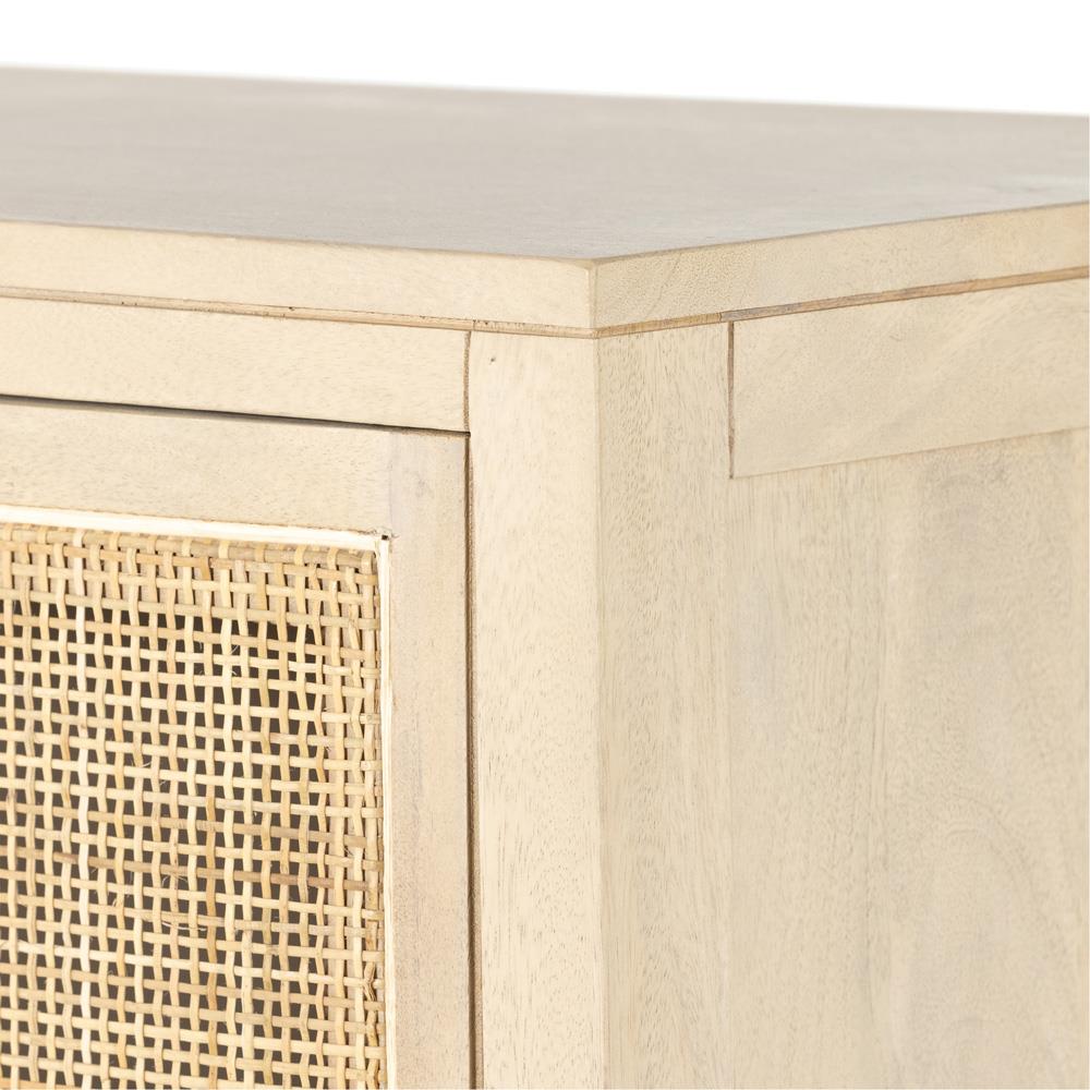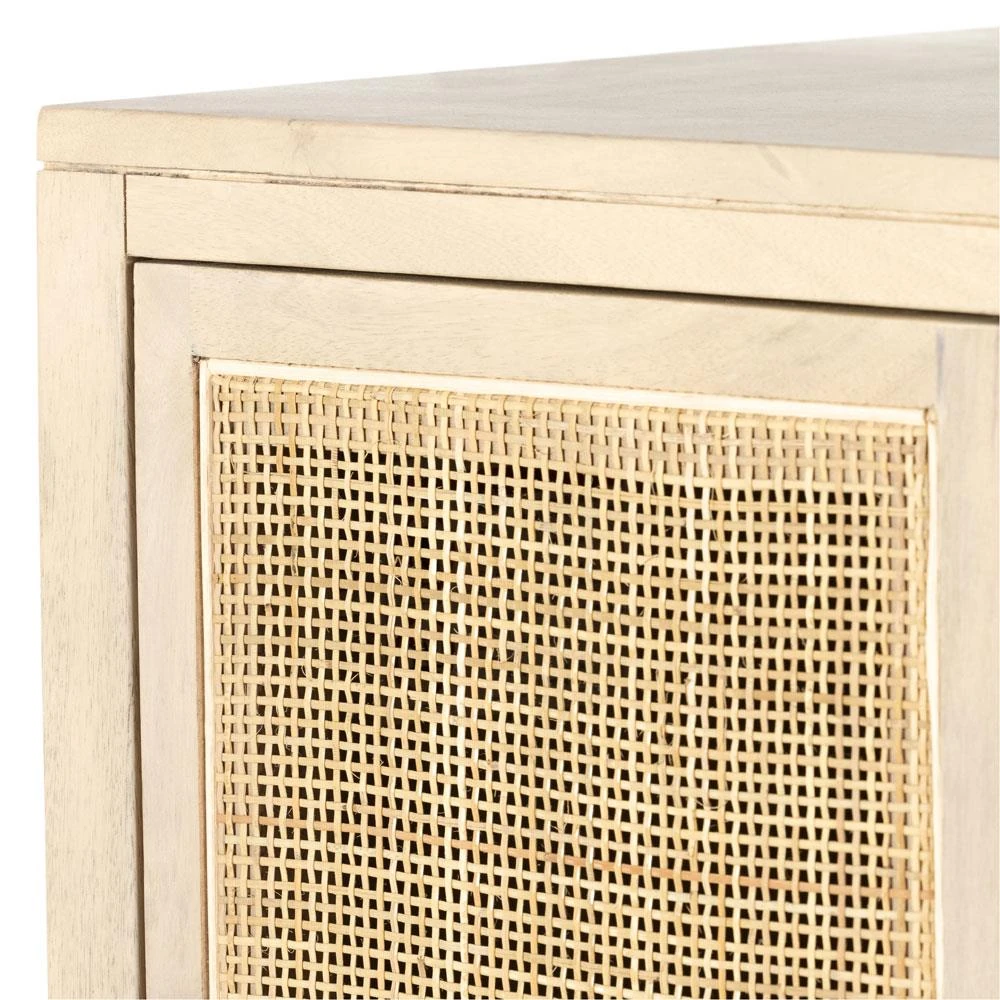 • Natural mango wood frames woven cane doors which open to reveal spacious interior storage