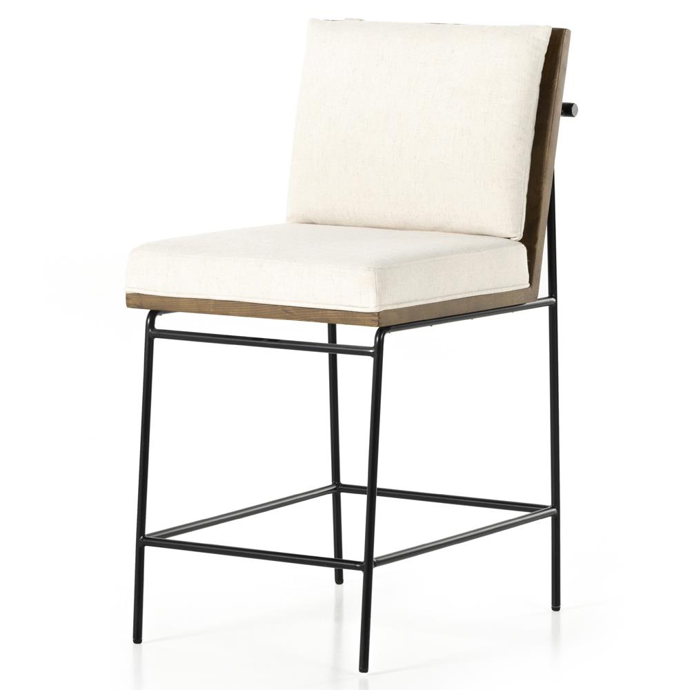 • Camila Modern Classic Cream Performance Brown Oak Counter Stool|Kathy Kuo Home