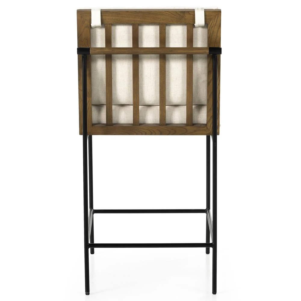 Edward Coastal White Linen Driftwood Mahogany Woven Cane Counter Stool