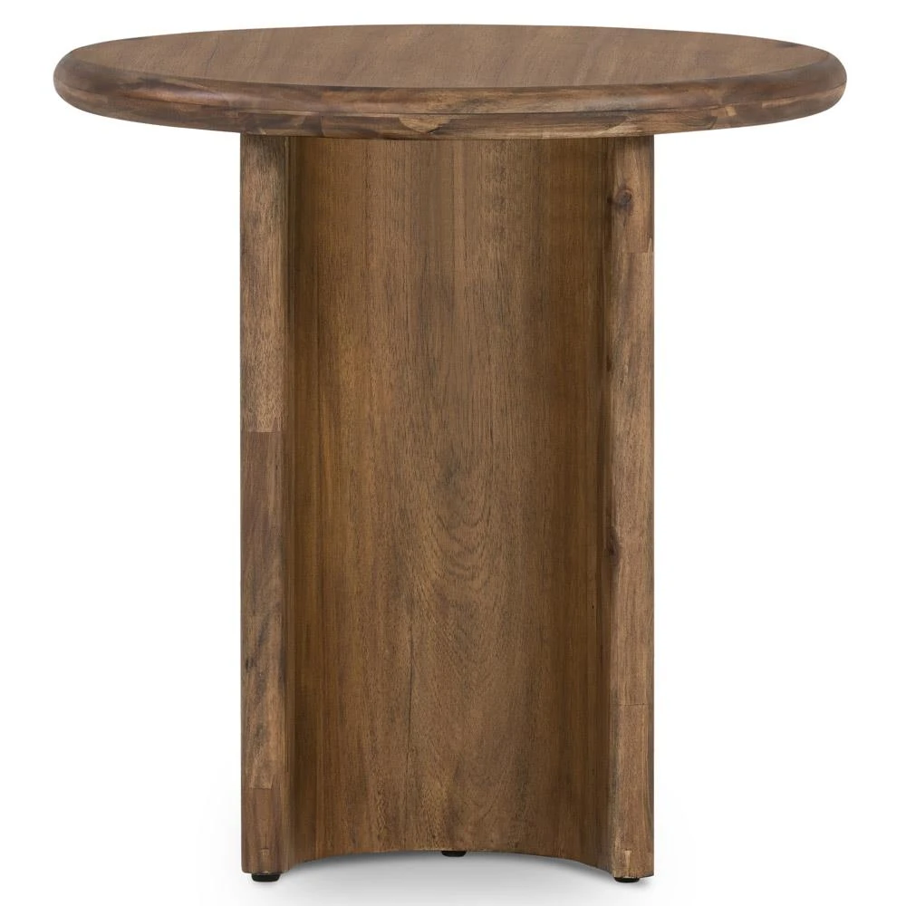 Paris Rustic Lodge Brown Acacia Wood Crescent Base Round Side End Table