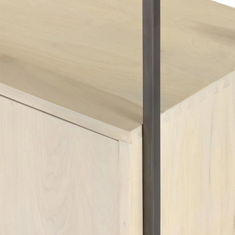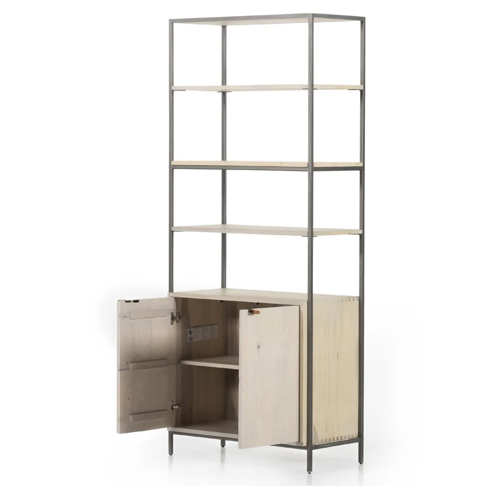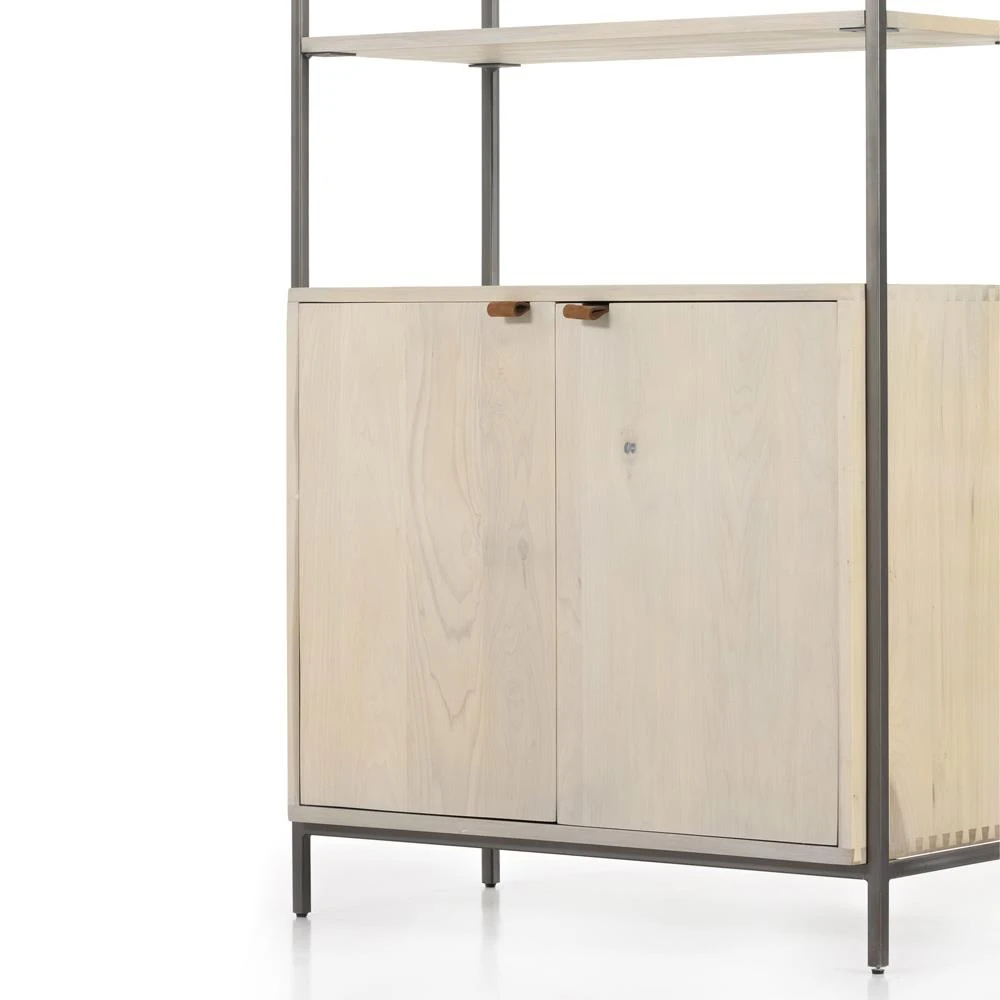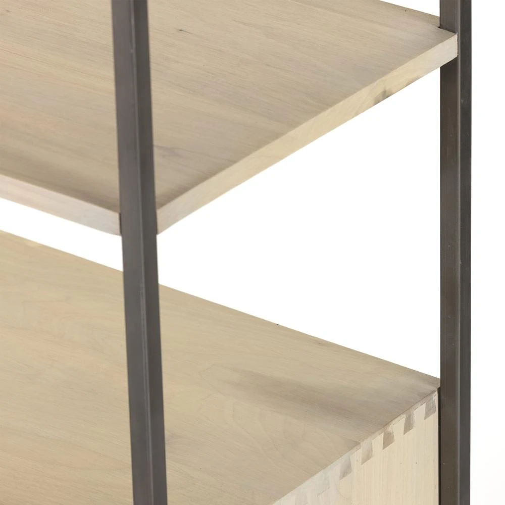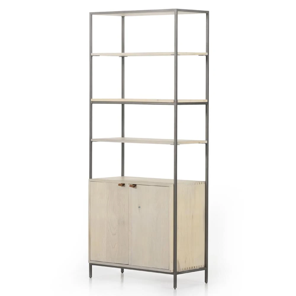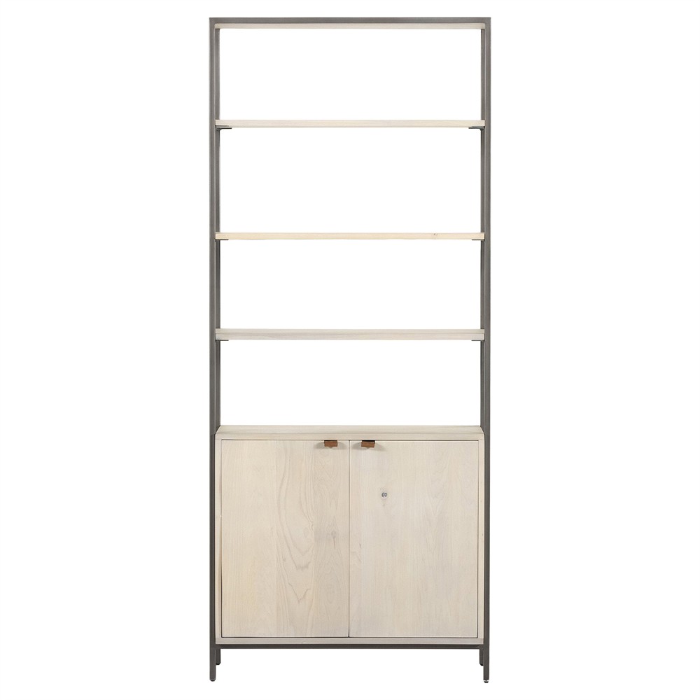 Theodore Industrial Loft Dove White Wood Grey Iron Frame Open Back Bookcase