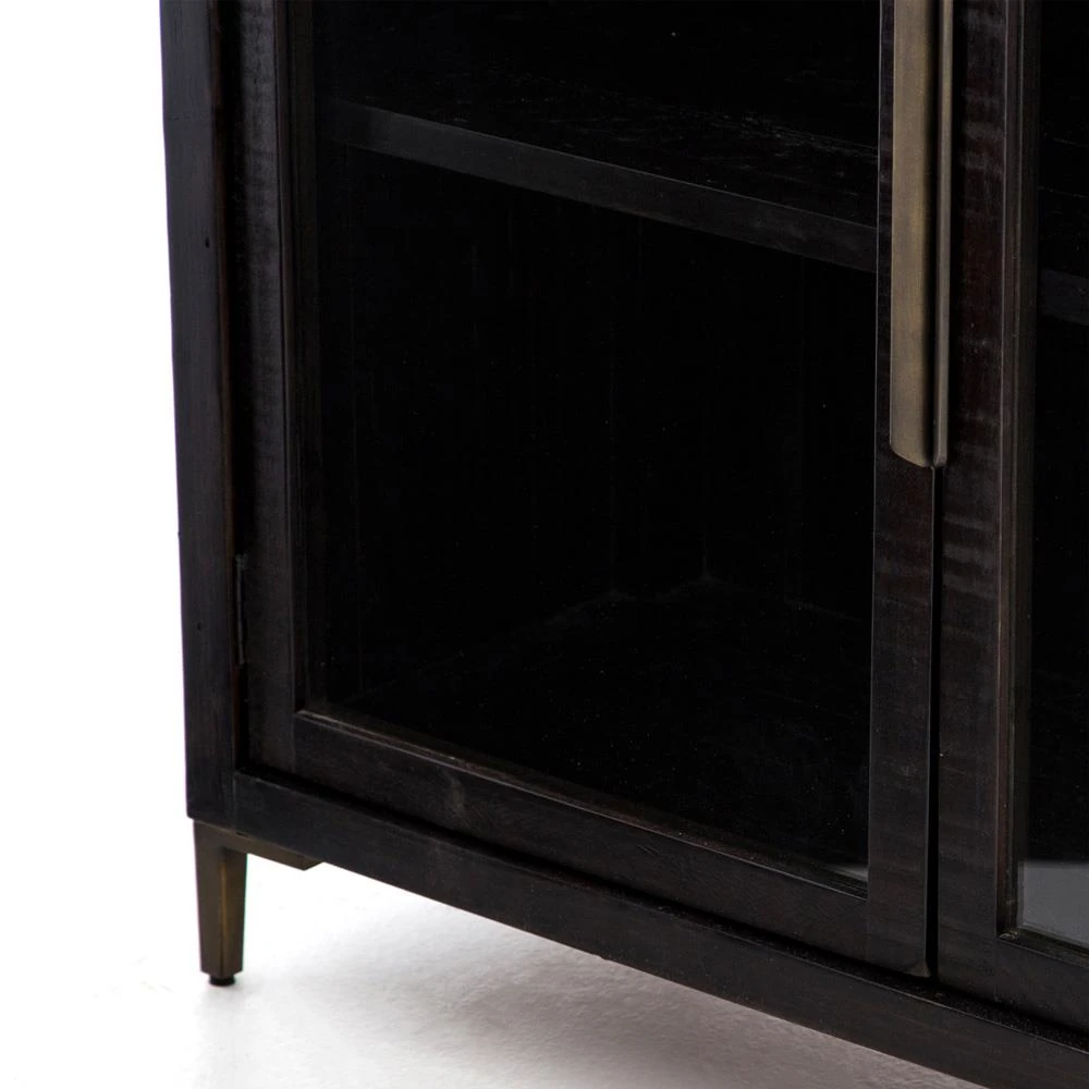Ivan Mid Century Clear Glass Black Solid Oak Wood 2 Door Arched Display Case