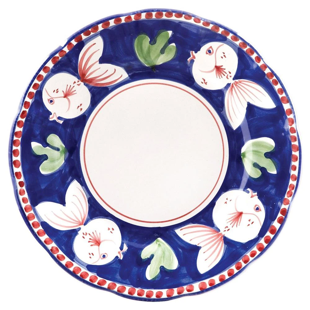 By Vietri. Cleverly hand-painted, the Campagna Pesce dinner plate features a playful scene of swimming fish on a blue, red, green, and ... more