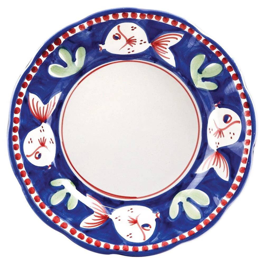 Campagna Pesce Coastal Beach Blue Ceramic White Fish Salad Plate