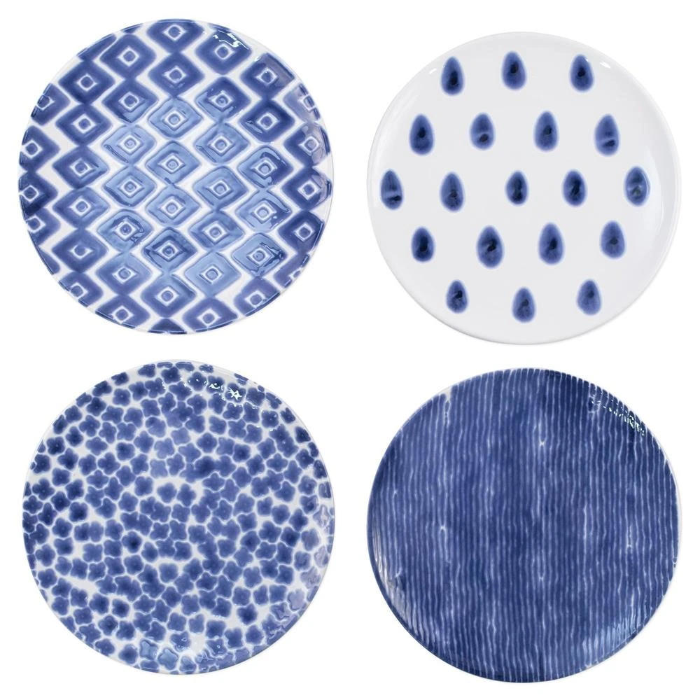 Santorini Global Bazaar Blue Ceramic Assorted Cocktail Plates - Set of 4