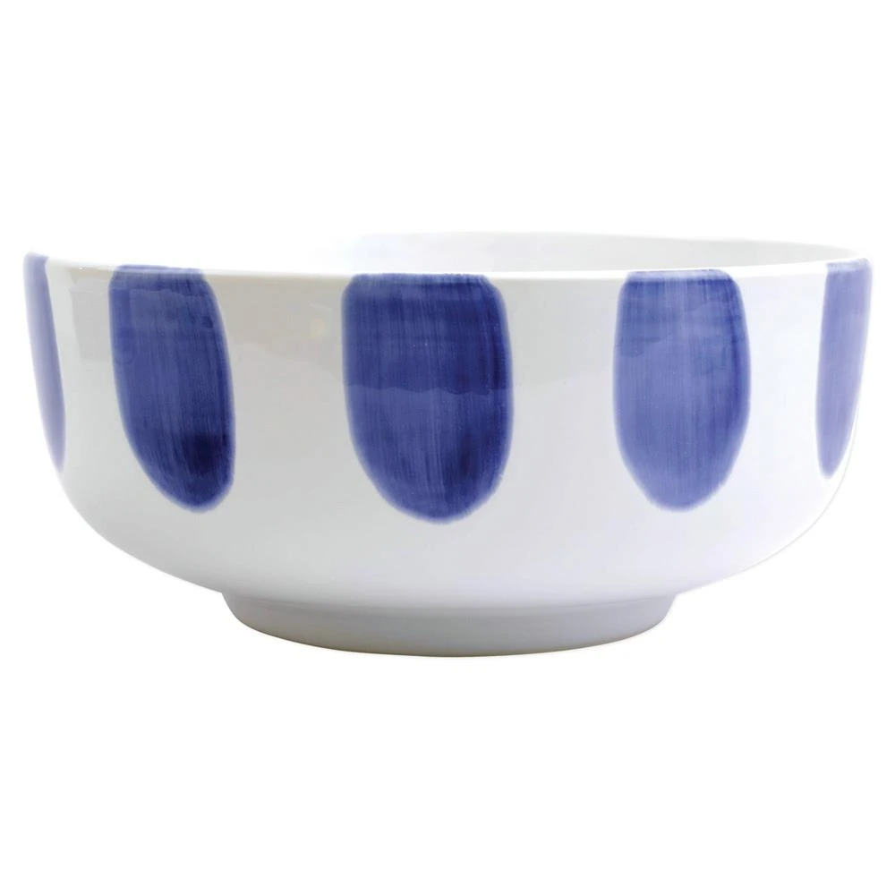 Santorini Global Bazaar White Ceramic Blue Dot Footed Serving Bowl