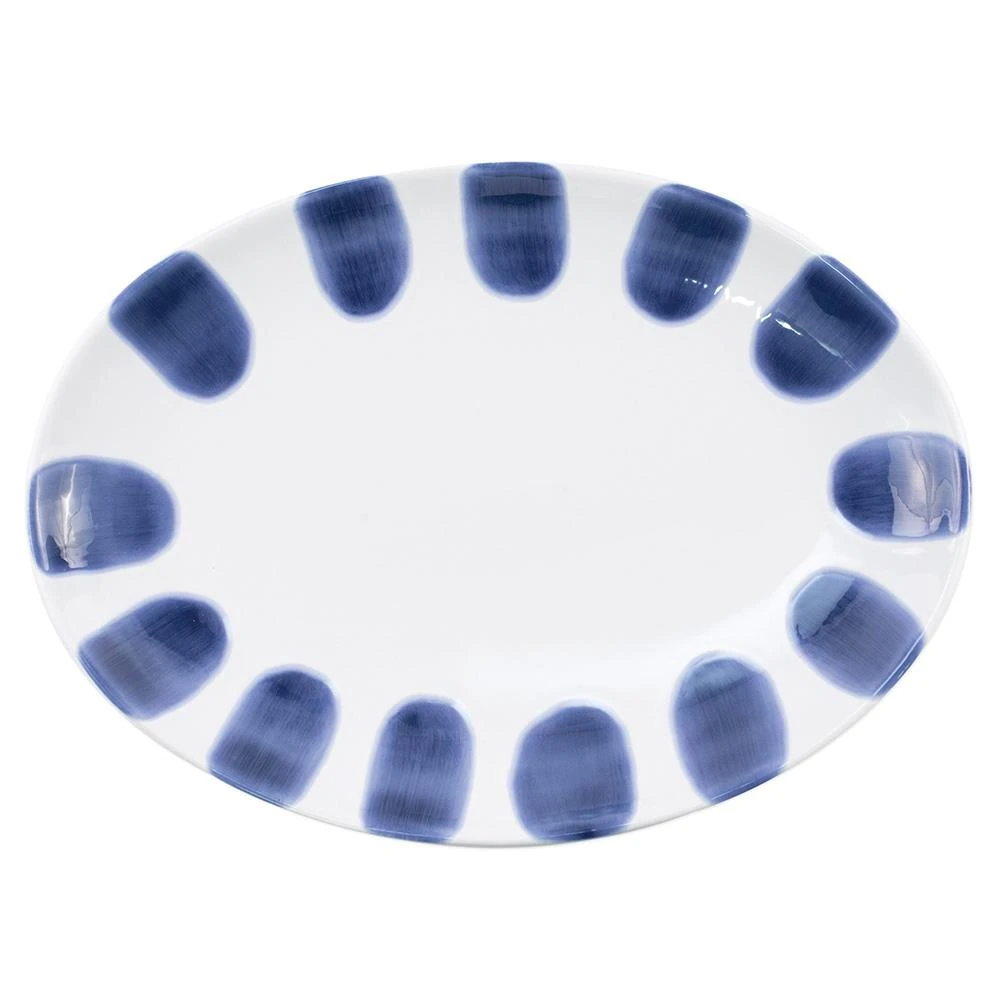 Santorini Global Bazaar White Ceramic Blue Dot Oval Platter