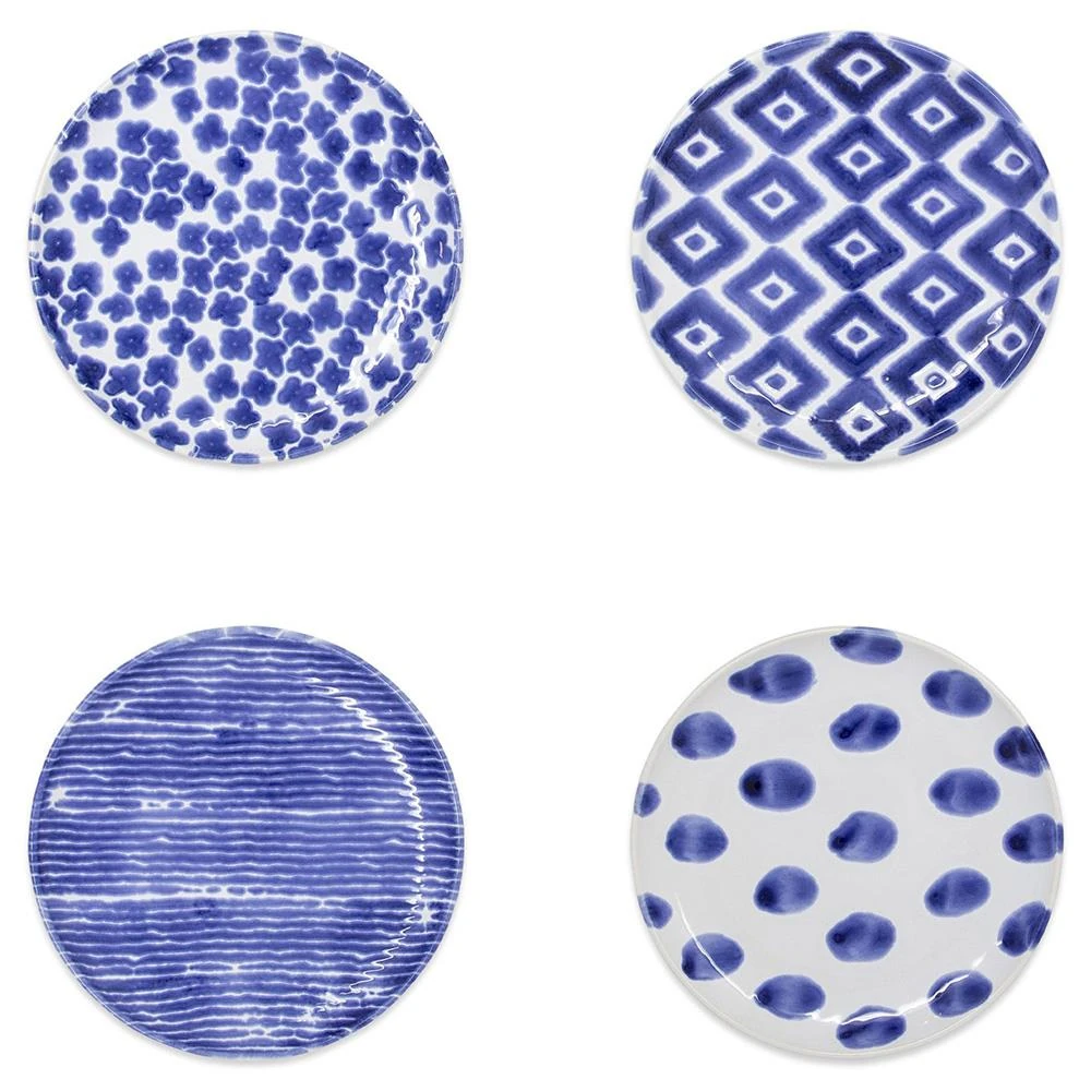 Santorini Global Bazaar Blue Ceramic Assorted Cocktail Plates - Set of 4