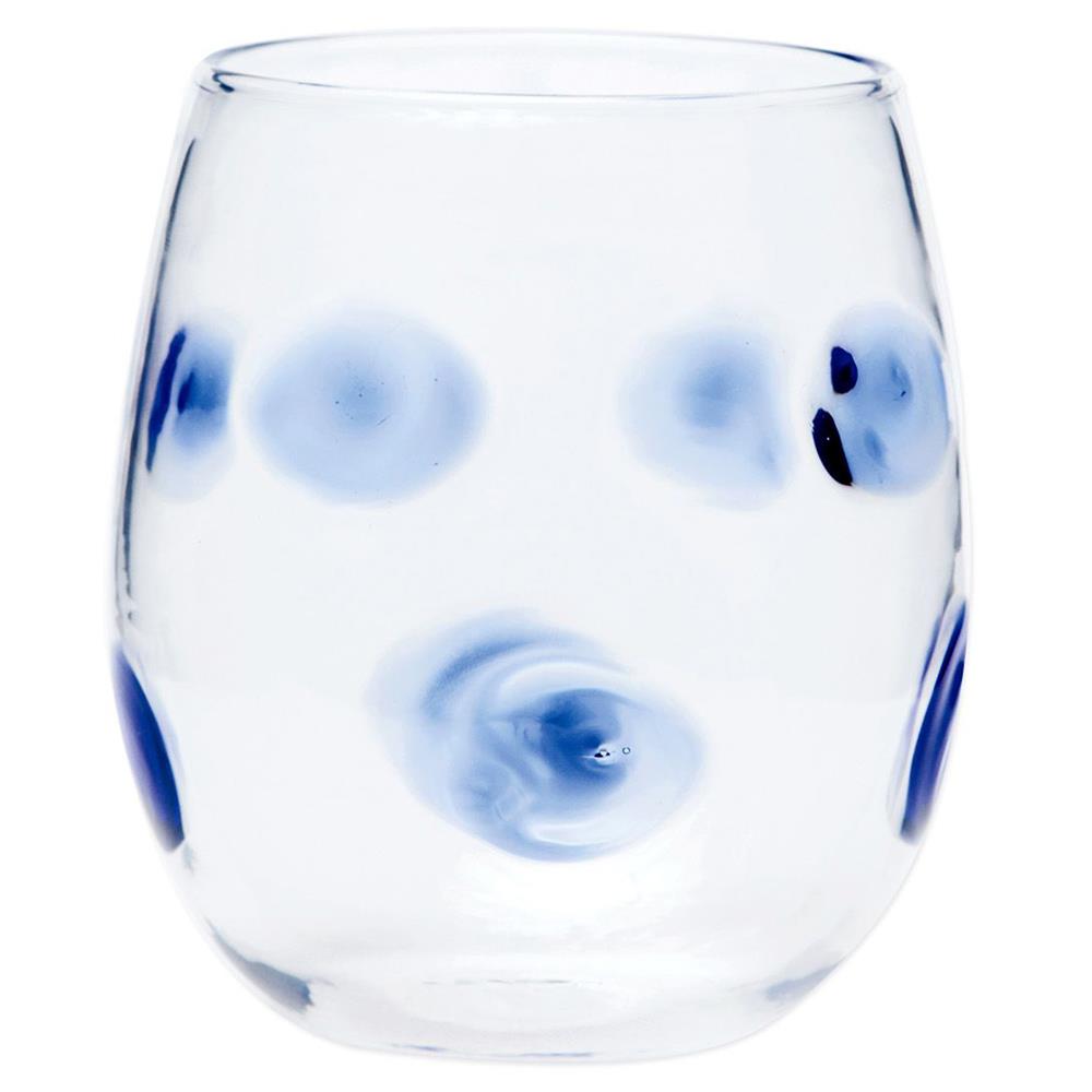 Drop Mid Century Modern Blue Stemless Wine Glass