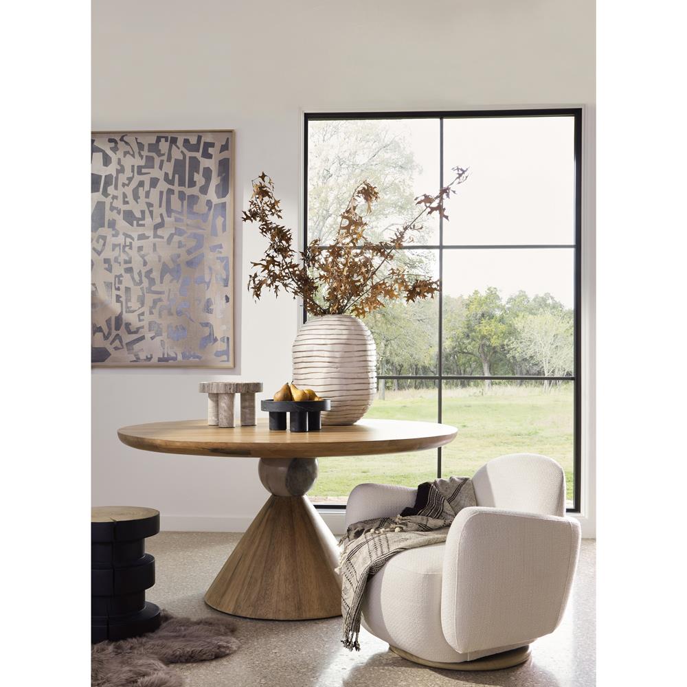 • Delina Updated Traditional Bleached Elm Wood Round Dining Table - 71"|Kathy Kuo Home