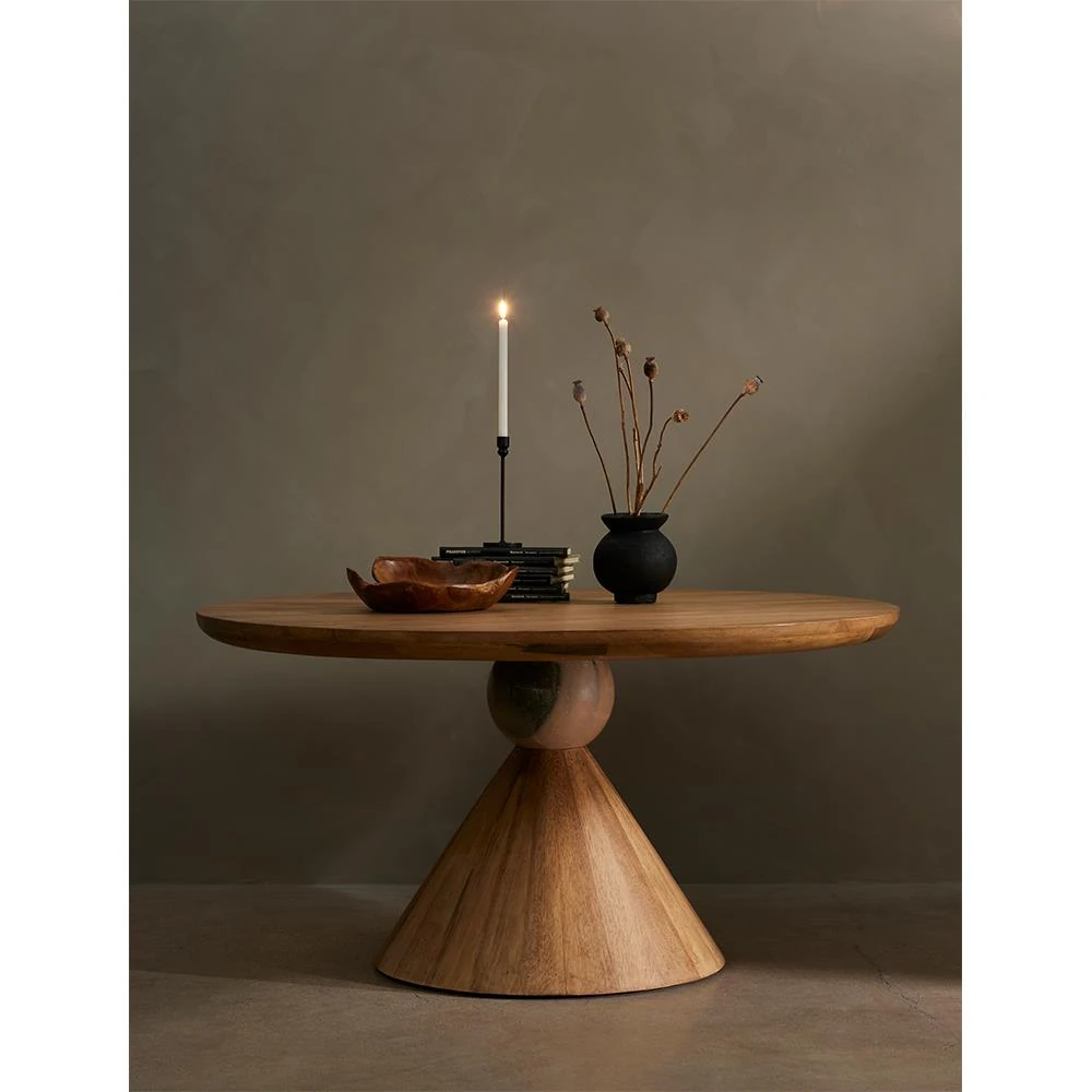 • Robin French Brown Reclaimed Pine Wood Round Pedestal Dining Table - 59''W|Kathy Kuo Home
