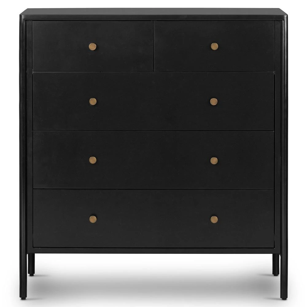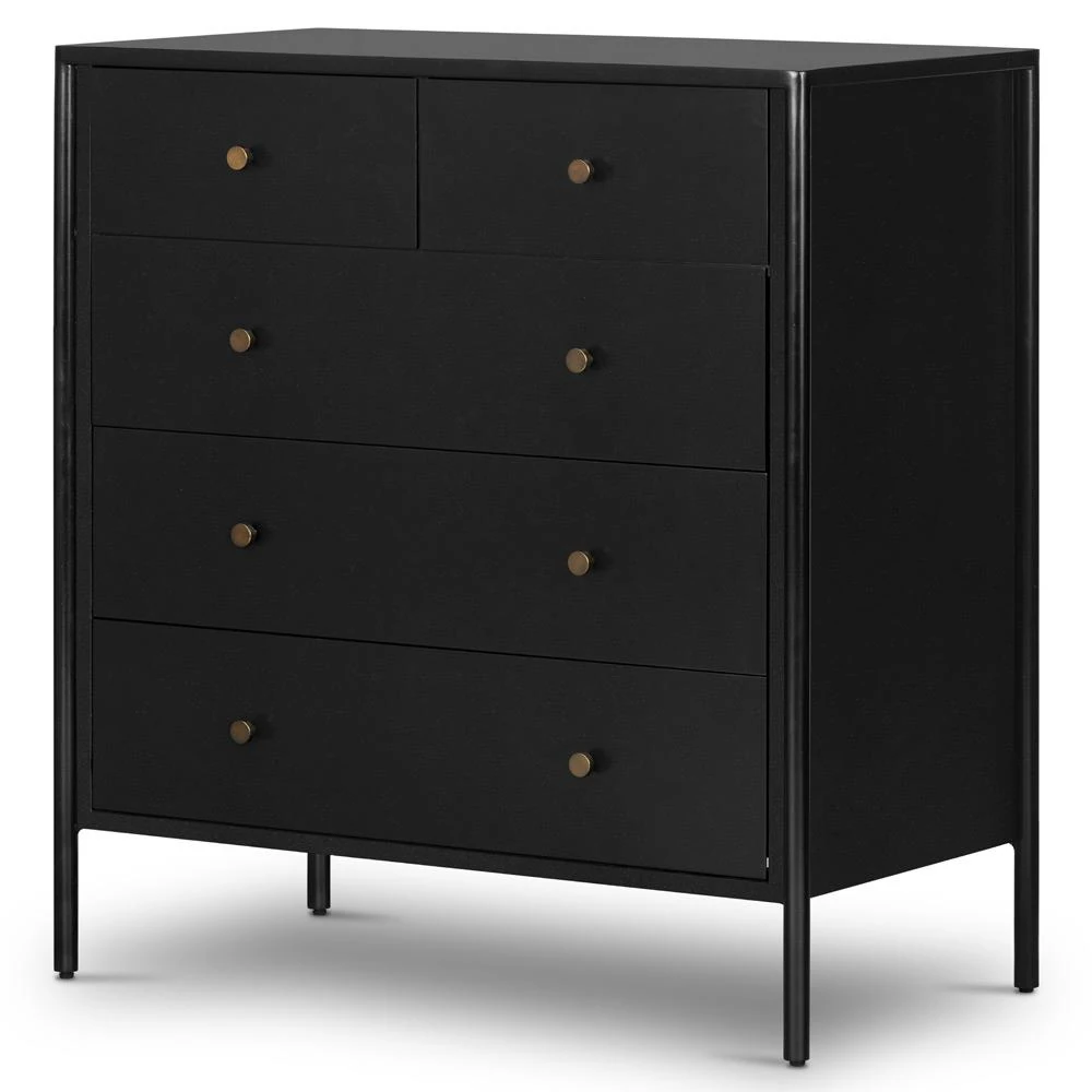 Sutton Industrial Loft Black Iron Bronze Hardware 5 Drawer Dresser