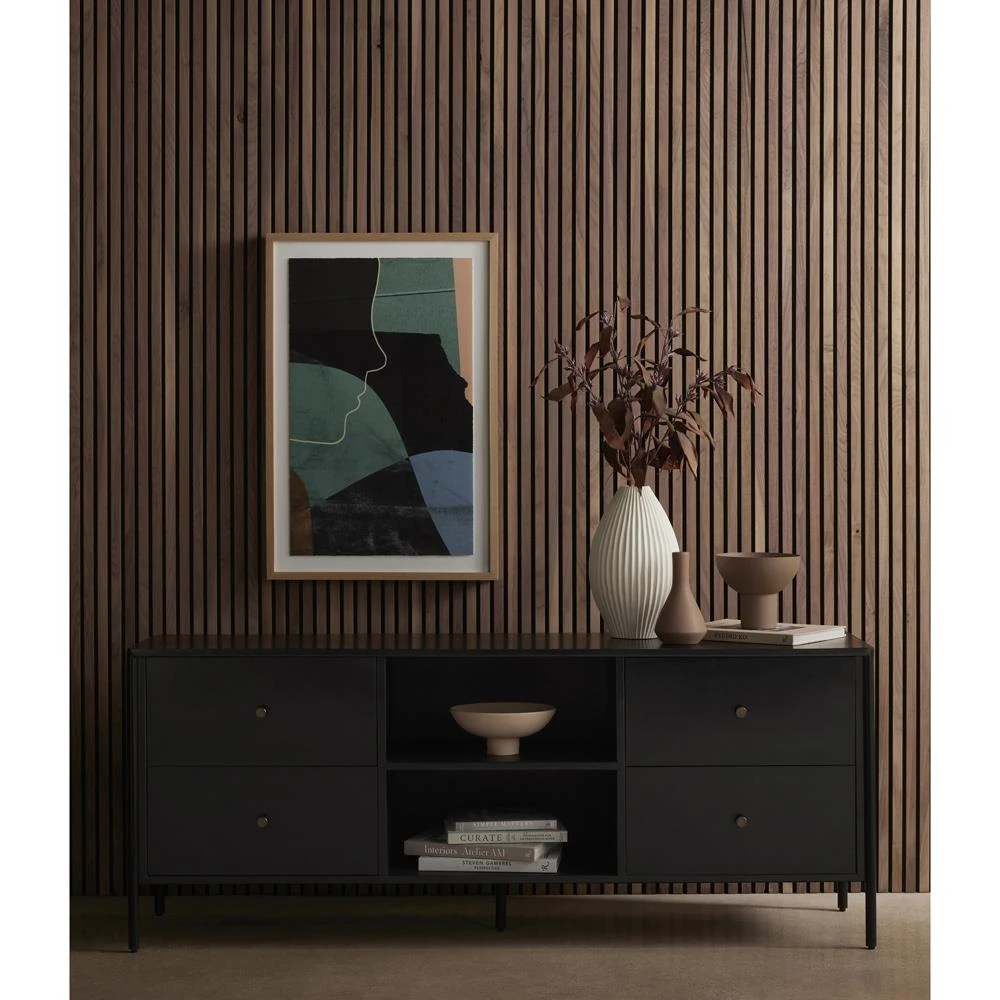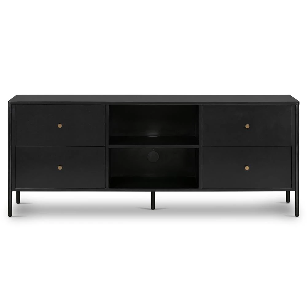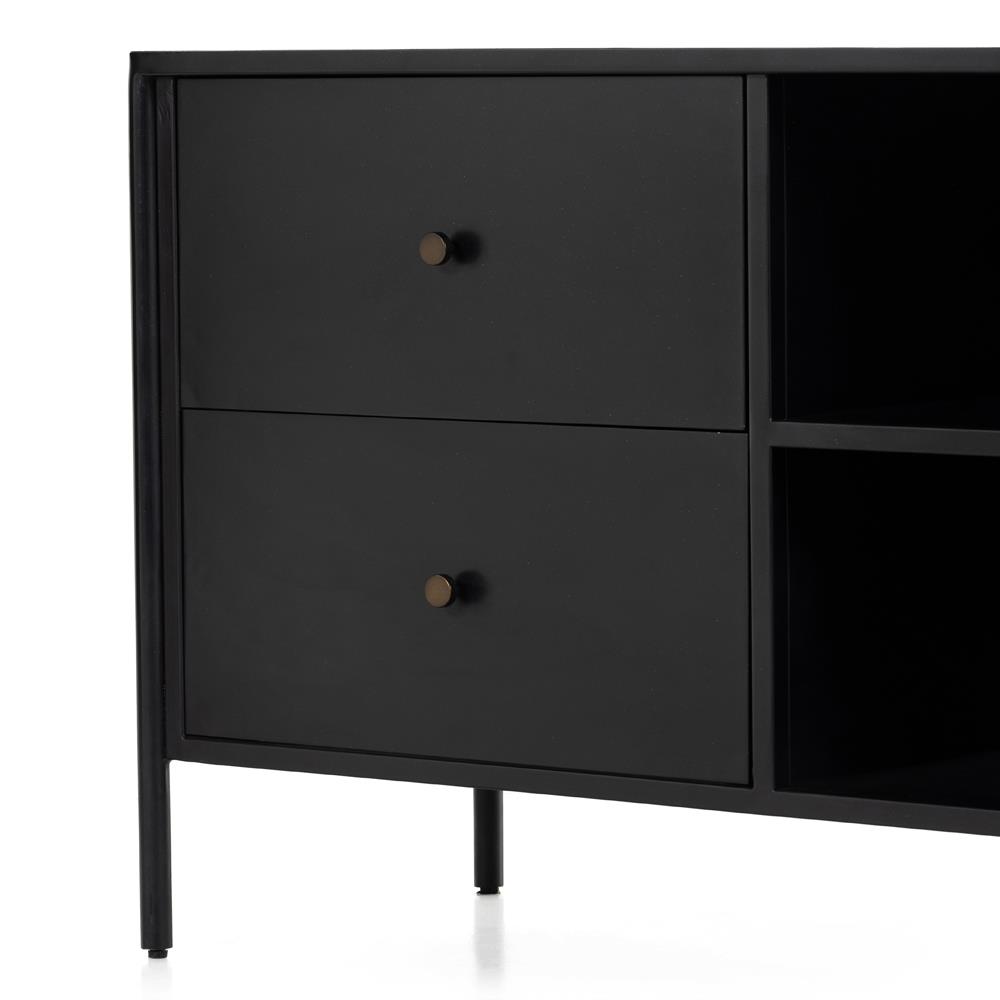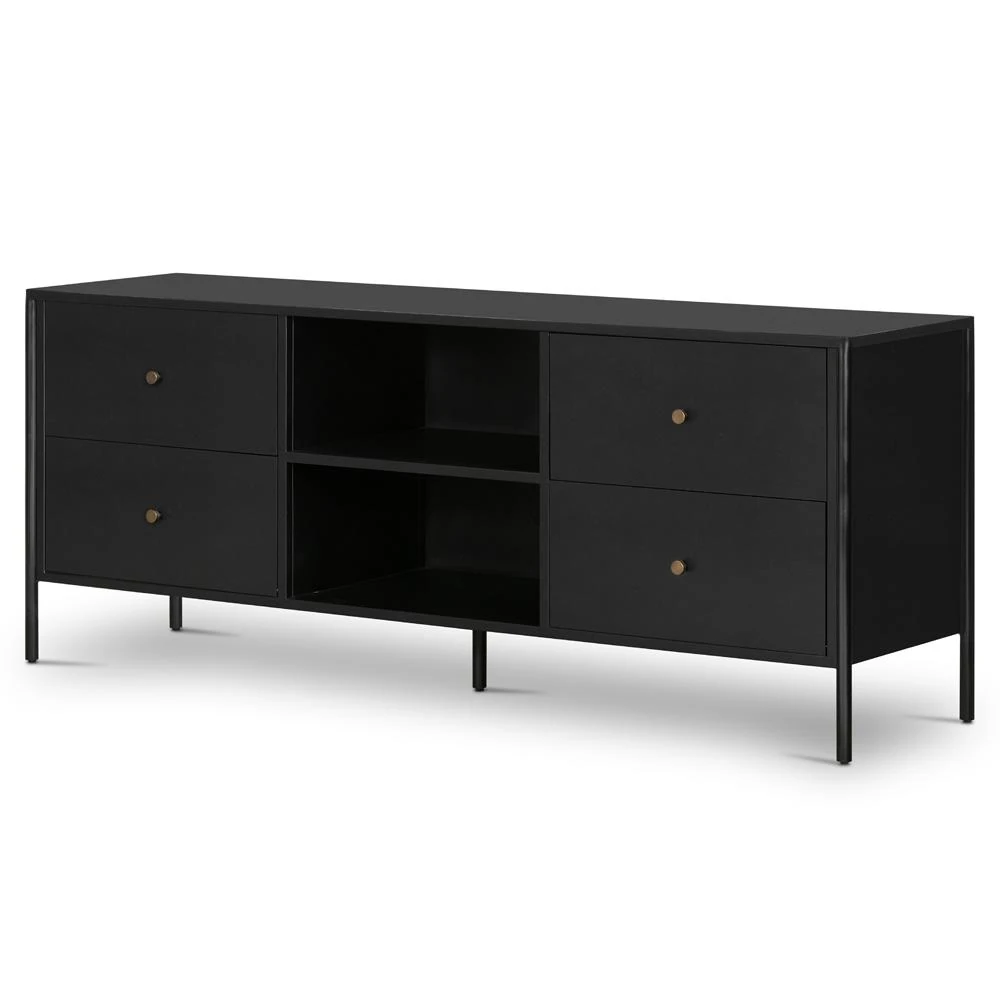 Sutton Industrial Loft Black Iron 4 Drawer Shelving Media Cabinet - 70"W