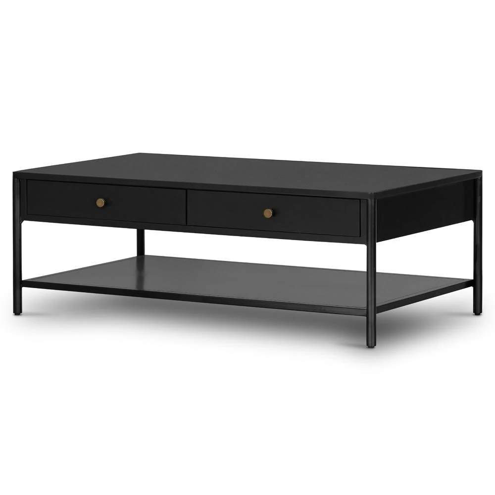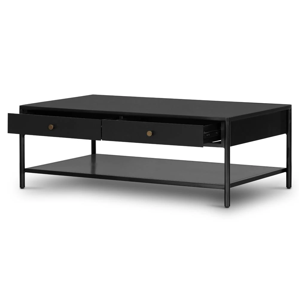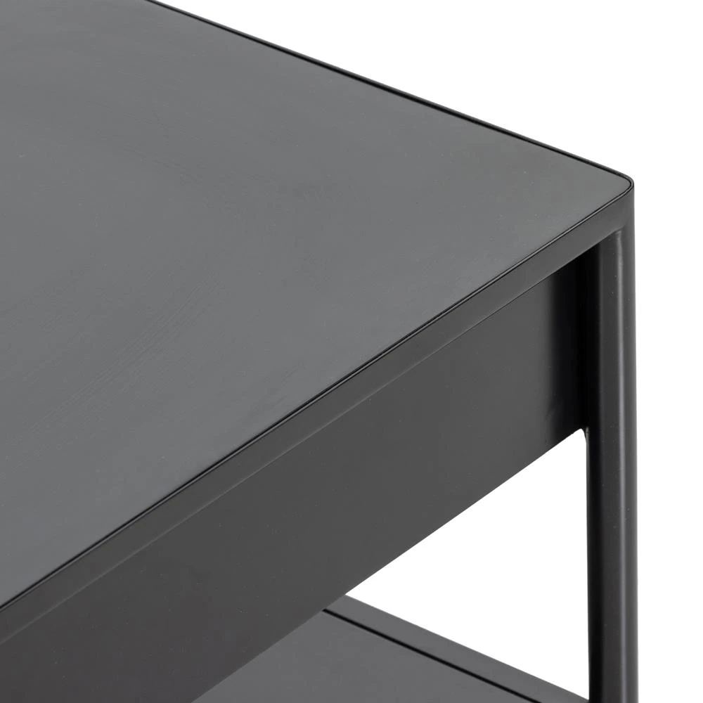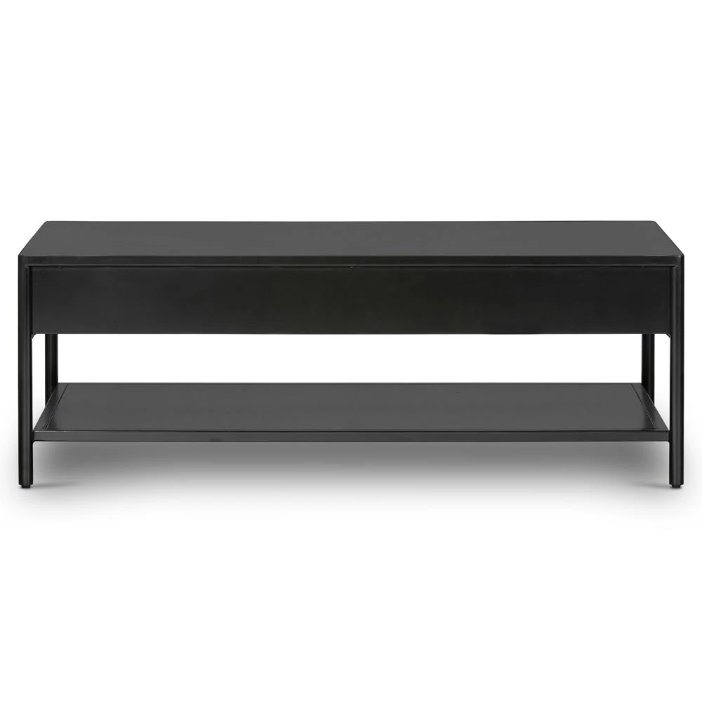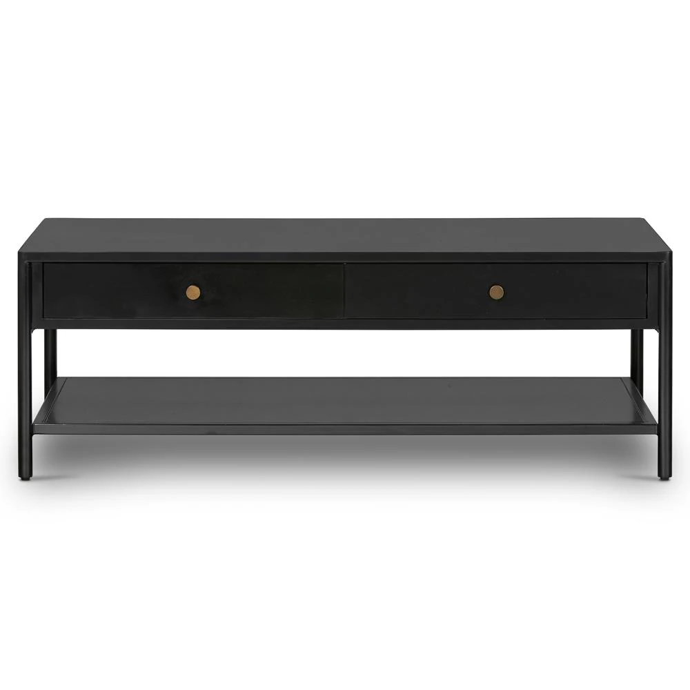 Sutton Industrial Black Iron 2 Drawer Shelving Rectangular Storage Coffee Table