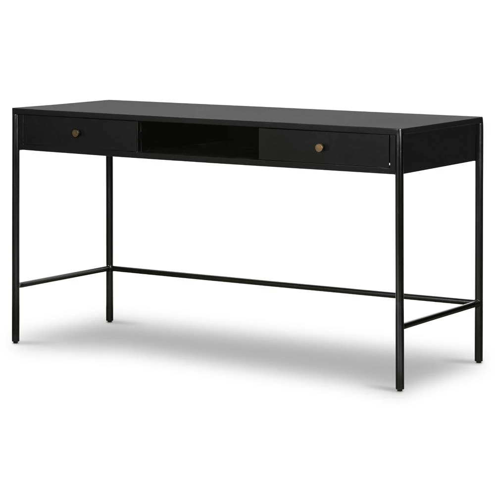 Sutton Industrial Loft Black Iron Bronze Hardware 2 Drawer Desk
